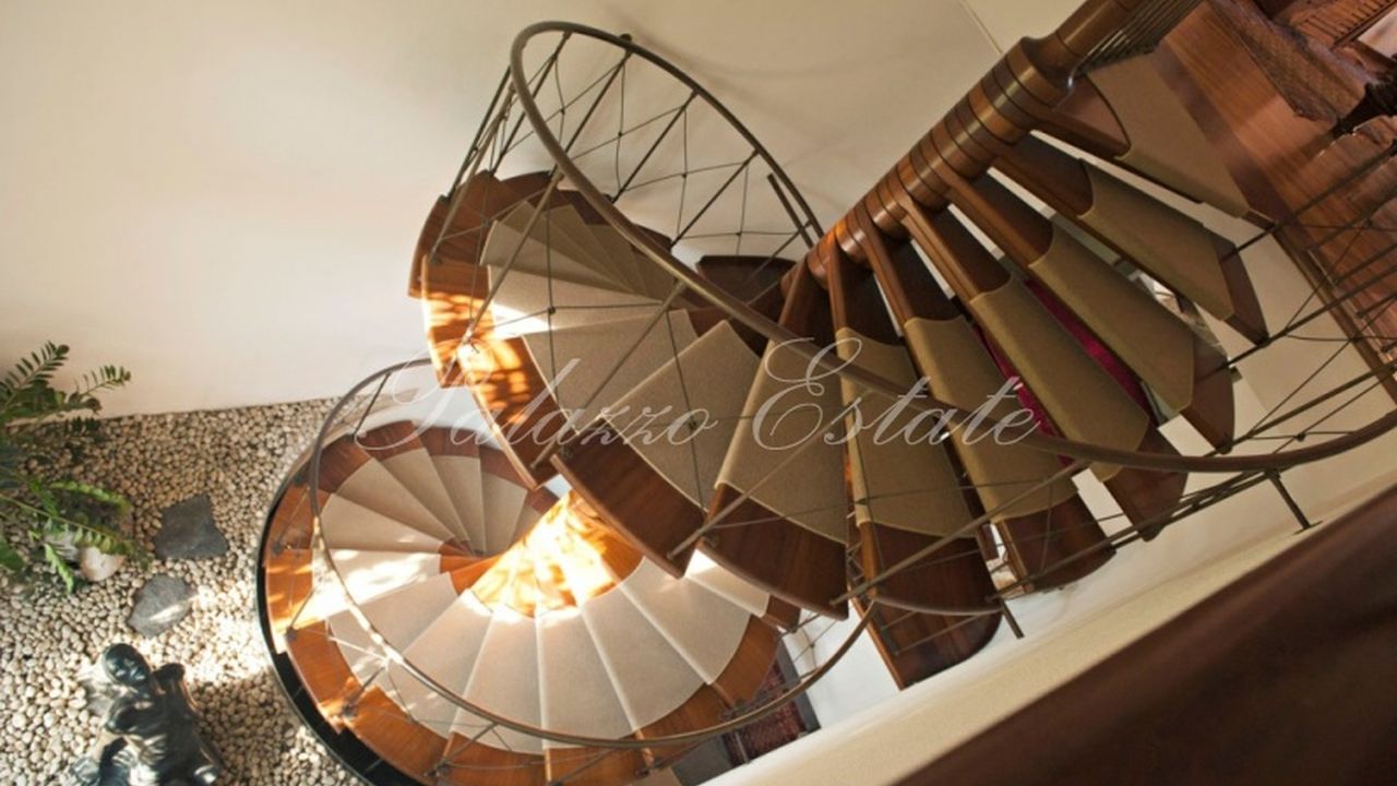 Отделка выполнена на высоком уровне. Вдоль лестницы, которая ведет на второй этаж, разбит висячий зимний сад.