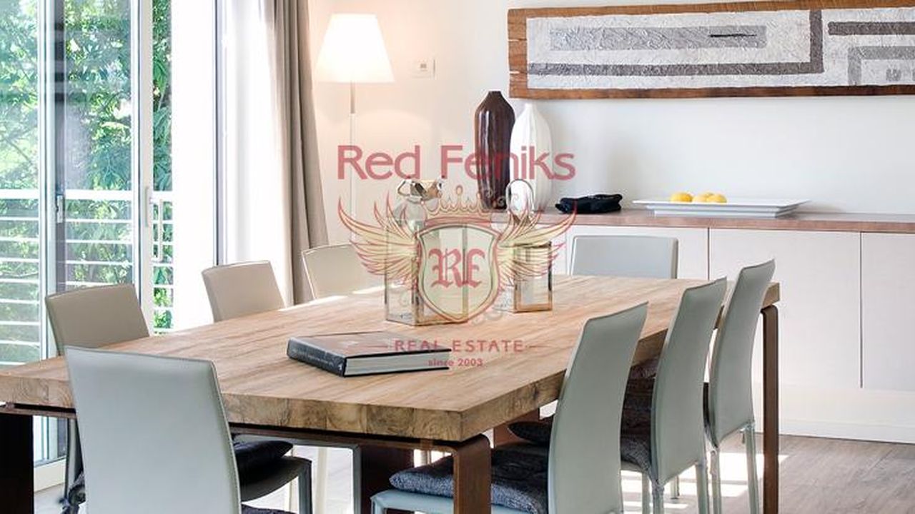 Столовая вмещает до 12 человек и имеет доступ на террасу, где можно устраивать трапезу на свежем воздухе.