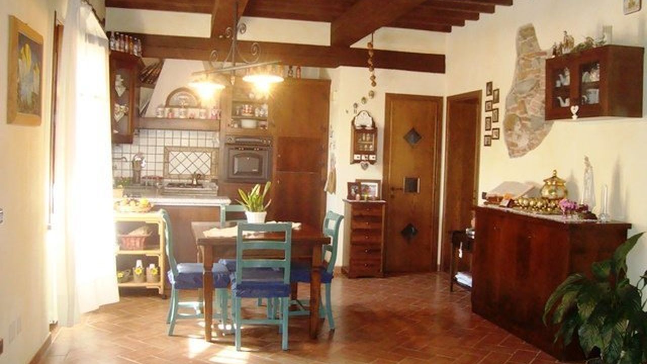 В панорамном месте с потрясающим видом на море, всего в нескольких минутах ходьбы от центра Nibbiaia, квартира на первом этаже площадью 110 кв.м., с собственным садом в 600 кв.м. Гостиная с кухней, коридор, 3 спальни, ванная комната, и отдельностоящий домик 20 кв.м. используемый как таверна, кладовка и беседка с барбекю в саду напротив дома, где можно поужинать на открытом воздухе наслаждаясь красивым закатом. Апартамент полностью отремонтирован с применением высококачественных материалов и с традиционной тосканской отделкой. В террасированном саду позади дома есть возможность построить бассейн. Часть сада используется совместно с квартирой на первом этаже.