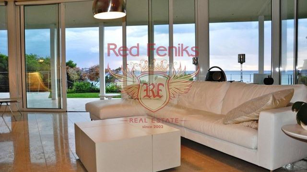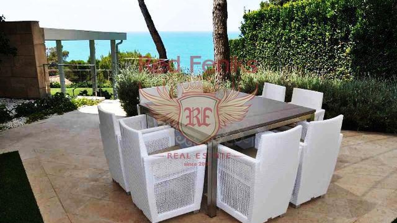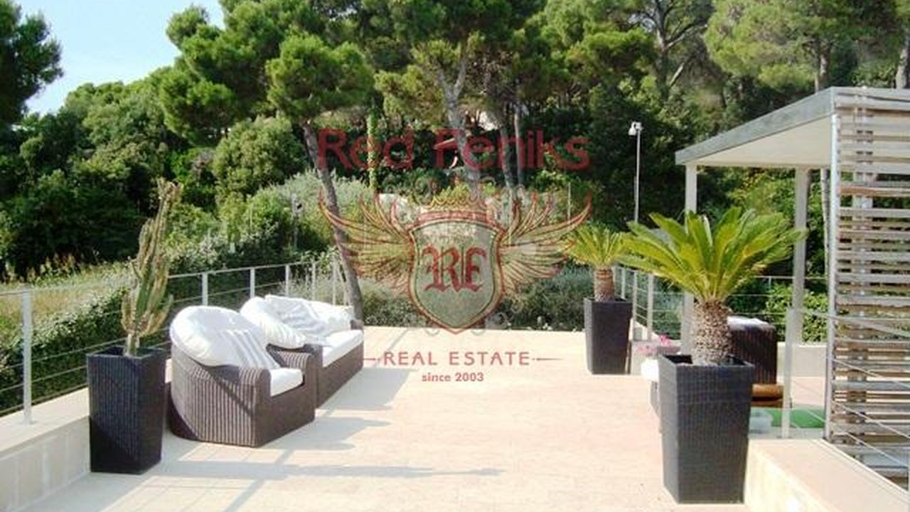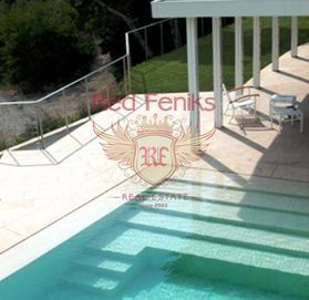 На нижнем уровне – гараж на 3 машины, подсобные помещения. Рядом с бассейном дополнительно отдельный большой санузел. Апартаменты для персонала (кухня, прачечная, спальня, ванная комната) полностью изолирован от дома.Вилла отделана дорогостоящими материалами, обставлена фирменной мебелью в минималистском стиле. Все помещения имеют прекрасные виды на море и окрестности.