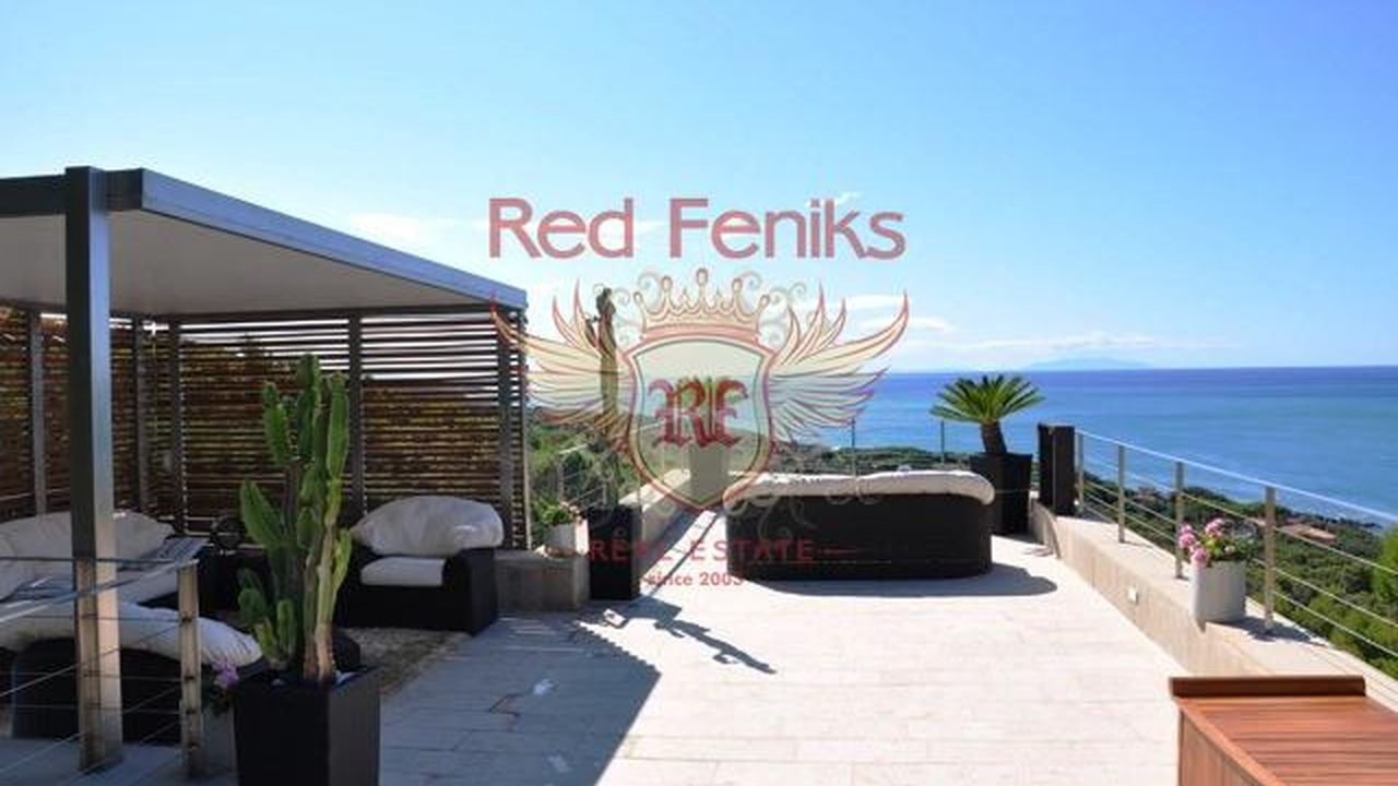 Второй этаж 90 кв. м. – 3 спальни, гардеробная и 3 ванных комнаты. Со второго этажа есть прямой выход на верхнюю террасу с панорамным видом на море и острова Тосканского архипелага.