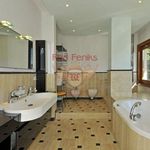 Вилла в Quercianella (Тоскана. 10 км на авто до Ливорно, 330 кв на авто до Венеции) В 700м от моря, вилла 250квм полностью реконструированная недавно с 1200квм сада в вековых соснах и с видом до моря Вход, малый салон, кухня, зона столовой, ванная и большой двойной салон в стекле с 3х сторон с выходом в сад и к бассейну на 2м этаже - 2 большие спальни с ванными ensuite, и спальня с террасой с видом до моря, гардеробная и ванная с джакузи Соляриум панорамный на крыше. Большой гараж с тех помещением. Большой бассейн с подсобными внизу помещениями. Высококачественные строительные материалы . Новое тех/оснащение виллы, как то - обогреваемые полы, центральная система климат, солнечные панели и т.п.