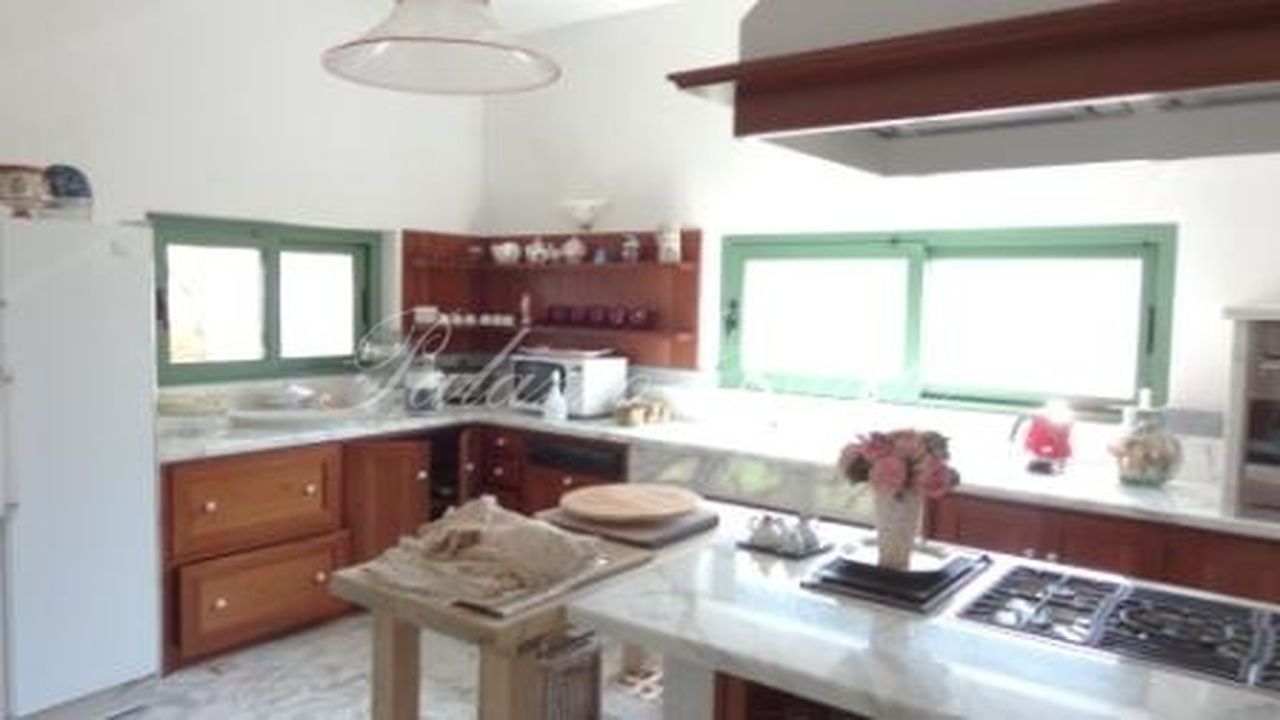 Площадь самой виллы составляет 500 кв.м. Отделка самого высокого качества (в основной это ценные породы мрамора). Внутри разместились 6 спален, 6 ванных комнат, большая гостиная с террасой, кухня, технические и полуподвальные помещения. Установлена система сигнализации, кондиционеры. До моря можно доехать на машине за 10 минут.