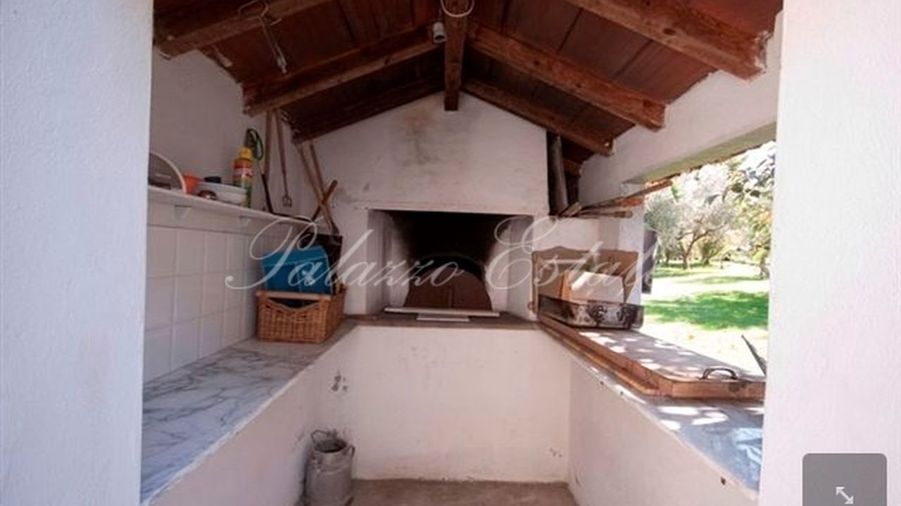 Дом окружает сад 3500 кв.м с оливковыми и фруктовыми деревьями, бассейном 6х12 метров, раздевалкой, теплым душем и дровяной печью. Установлена система ирригации, управляемая вручную. Позади дома есть депенданс: небольшая гостиная с кухней, спальня и санузел. На частную территорию можно попасть через 4 разных входа.