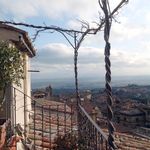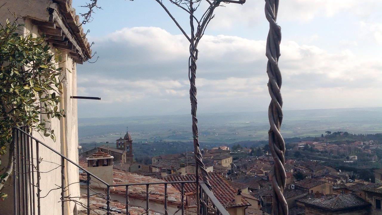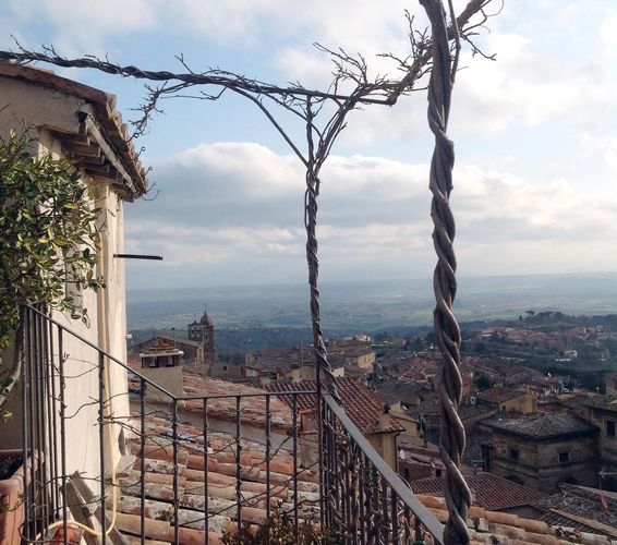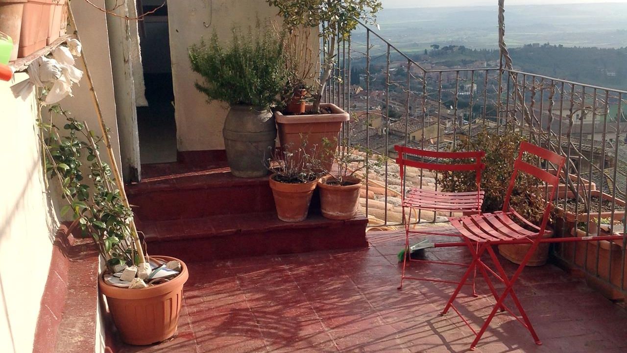 During the Middle Ages the building was used as a hospital and was transformed and renovated by the actual owner. It is located on the first floor of an antique two-storey building. It comprises 1 broad living room equipped with a fireplace, 1 kitchen, 3 bedrooms, 2 bathroom of which one serves the master bedroom , 1 study room and 1 utility room used as launderette. From the living room stairs you can reach the terrace. From the terrace you can enjoy a panoramic view over both the centre of the town and the valley, From Cortona to the Trasimeno lake. If the day is particularly clear you could even see the Majella mountains.