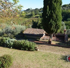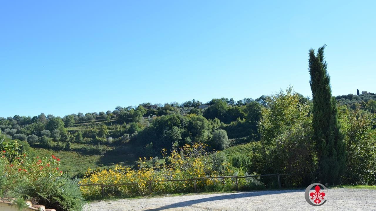 The property is accessible via a short dirt road, about 200m; on the rear of the property there is a large garden with panoramic views over the valley. The land, about 7ha, is divided into the vineyard, 3 ha of Rosso di Montepulciano and Chianti DOC, 230 olive trees in production and arable land. There is the possibility to make a pool.