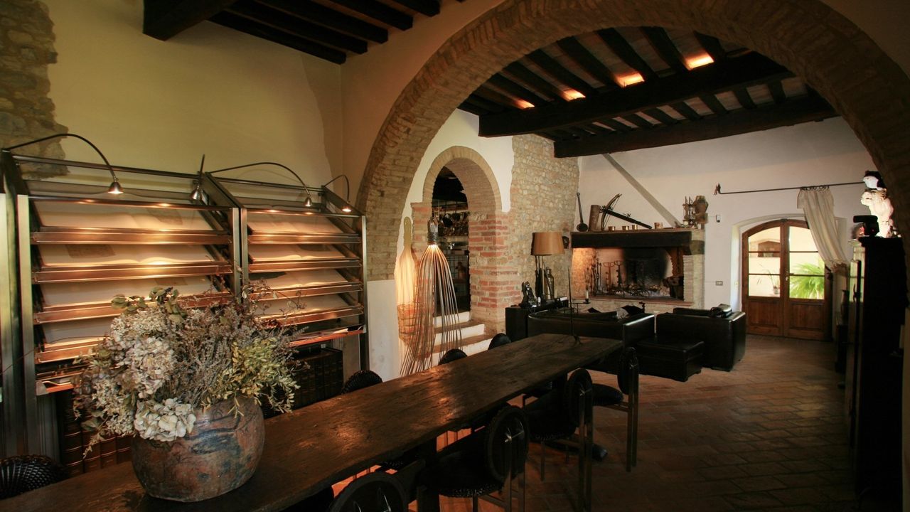 Это аристократическое поместье - самая настоящая тосканская мечта, воплощенная в жизнь. Элитная вилла окружена кипарисами, дубовыми и оливковыми деревьями, китайскими финиками и земляничными деревьями. Поместье расположено на одном из холмов, окружающих Монтеспертоли, в уединенном месте, откуда открываются восхитительный вид на холмы и виноградники Кьянти. После ремонтных работ это поместье восемнадцатого века превратилось в элегантную роскошную виллу, которая, с одной стороны, сохранила свои характерные черты типичного тосканского сельского дома, а с другой, оборудована многочисленными современными удобствами.