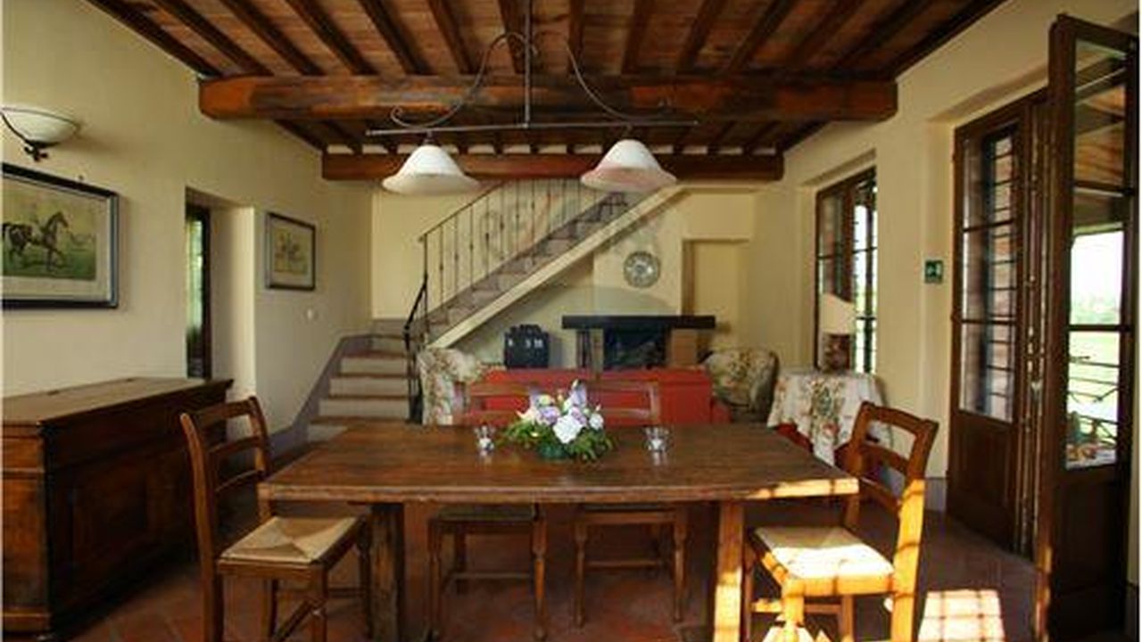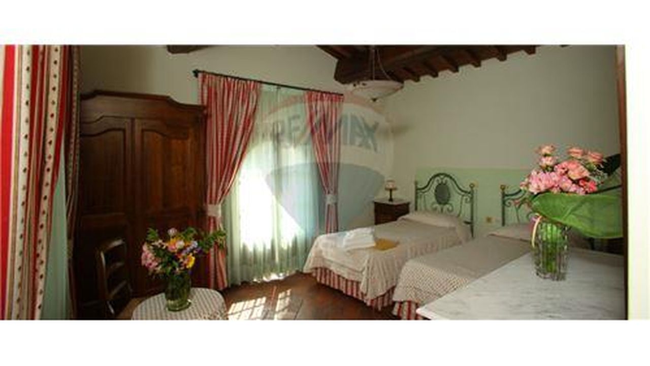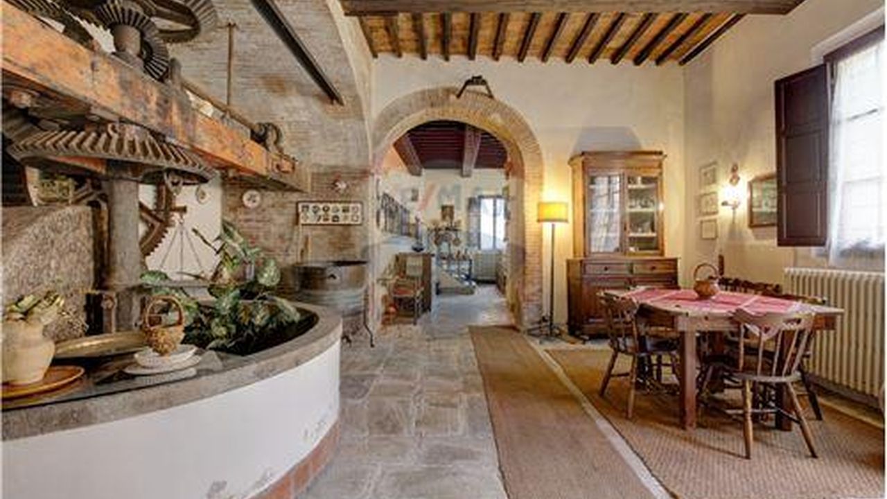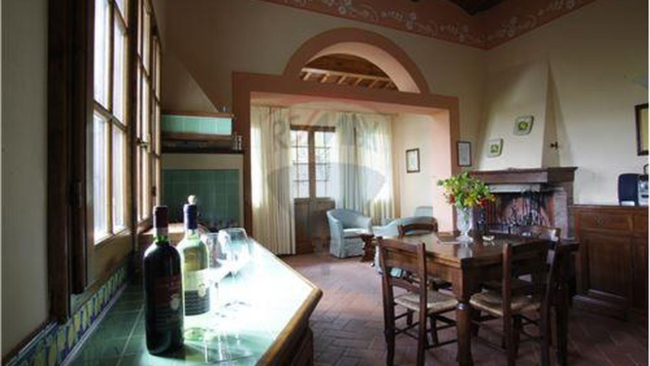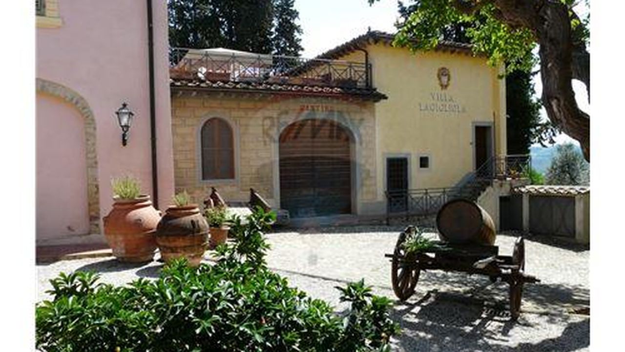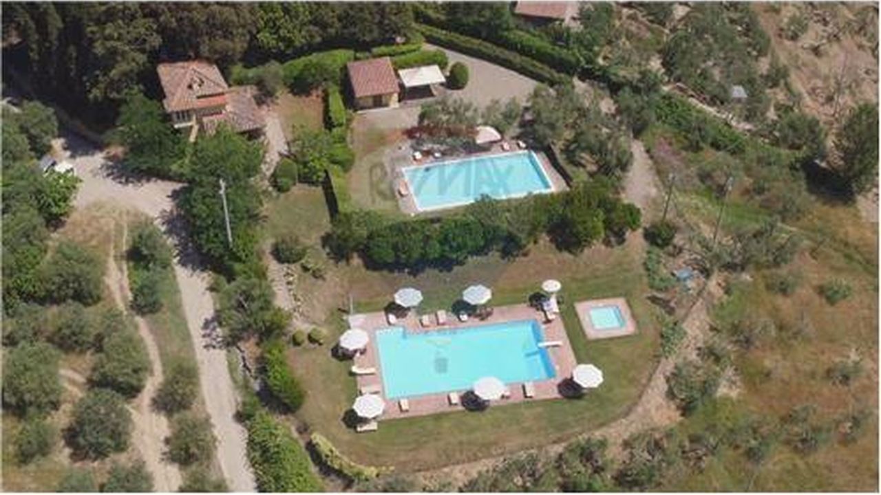 на 65 г высажен виноград, 4 корпуса недвижимости, разделенных следующим образом: - основная часть состоит из различных зданий , сама Вилла имеет общую площадь около 4500 квадратных метров, в окружении парка площадью около 20 000 квадратных метров, где расположены 3 плавательных бассейнах и теннисный корт , вторая часть построек состоит из нескольких частично отреставрированных зданий общей площадью около 2100 квадратных метров, окруженных двором площадью около 6500 квадратных метров и третья часть построек состоит из нескольких частично отреставрированных зданий общей площадью около 1000 квадратных метров, окруженных двором площадью около 5000 квадратных метров. И наконец, последний состоит из нескольких частично отреставрированных зданий, которые имеют общую площадь около 1100 квадратных метров, окруженных двором площадью около 5000 квадратных метров. Поместье имеет винодельческое призвание, 300 гектаров разделены : - около 65 гектаров виноградников (90% Кьянти) - около 40 гектаров оливковых деревьев - около 90 гектаров пахотных земель - около 95 гектаров лес - около 4 гектаров, предназначенных для ореховых деревьев, около 6 гектаров, предназначенных для пастбищ, невозделанных.Часть поместья так же входит в охотничий заповедник, который простирается примерно на 400 гектаров, из них около 200 гектаров, входит в собственность ,