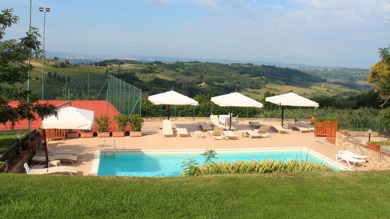 В отеле ухоженные сады с многих панорамным углов и креслами, красивый бассейн и теннисный корт, и в панорамном месте с захватывающим видом на залитые солнцем холмы Тосканы.