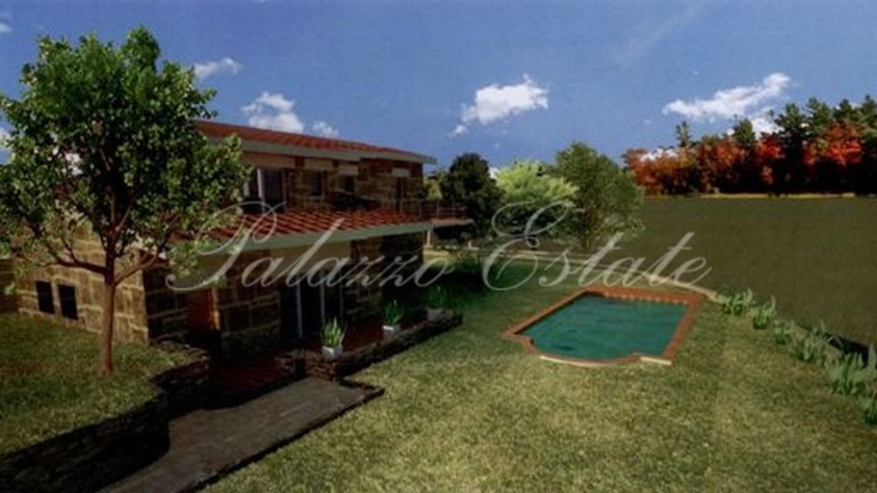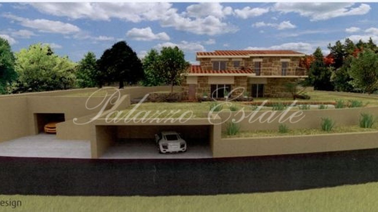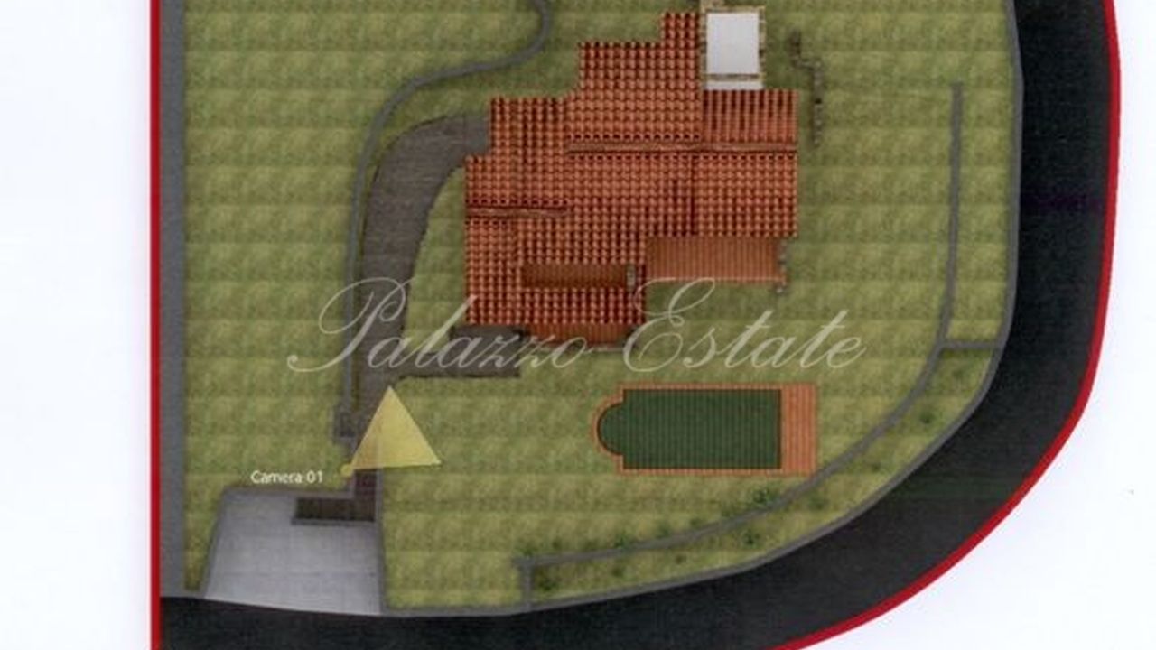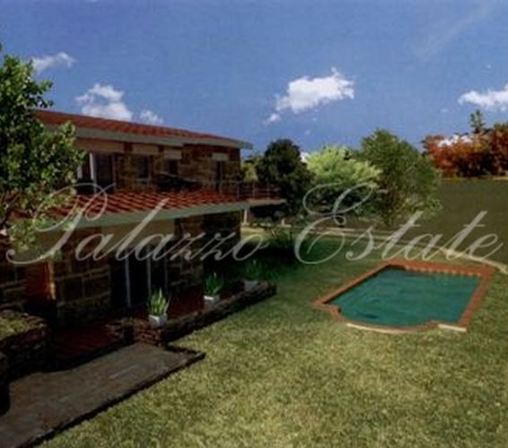 Вилла окружена просторным садом с портиками, бассейном и подземным гаражом.