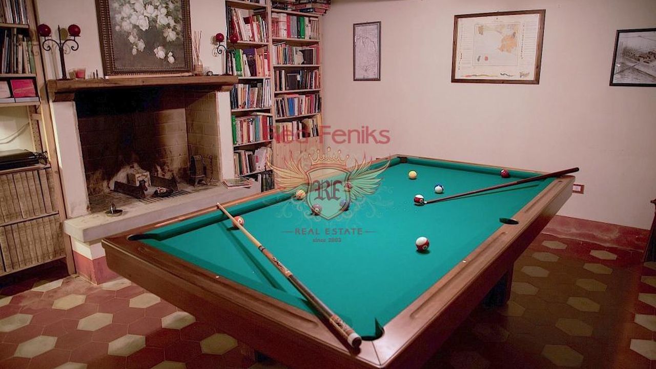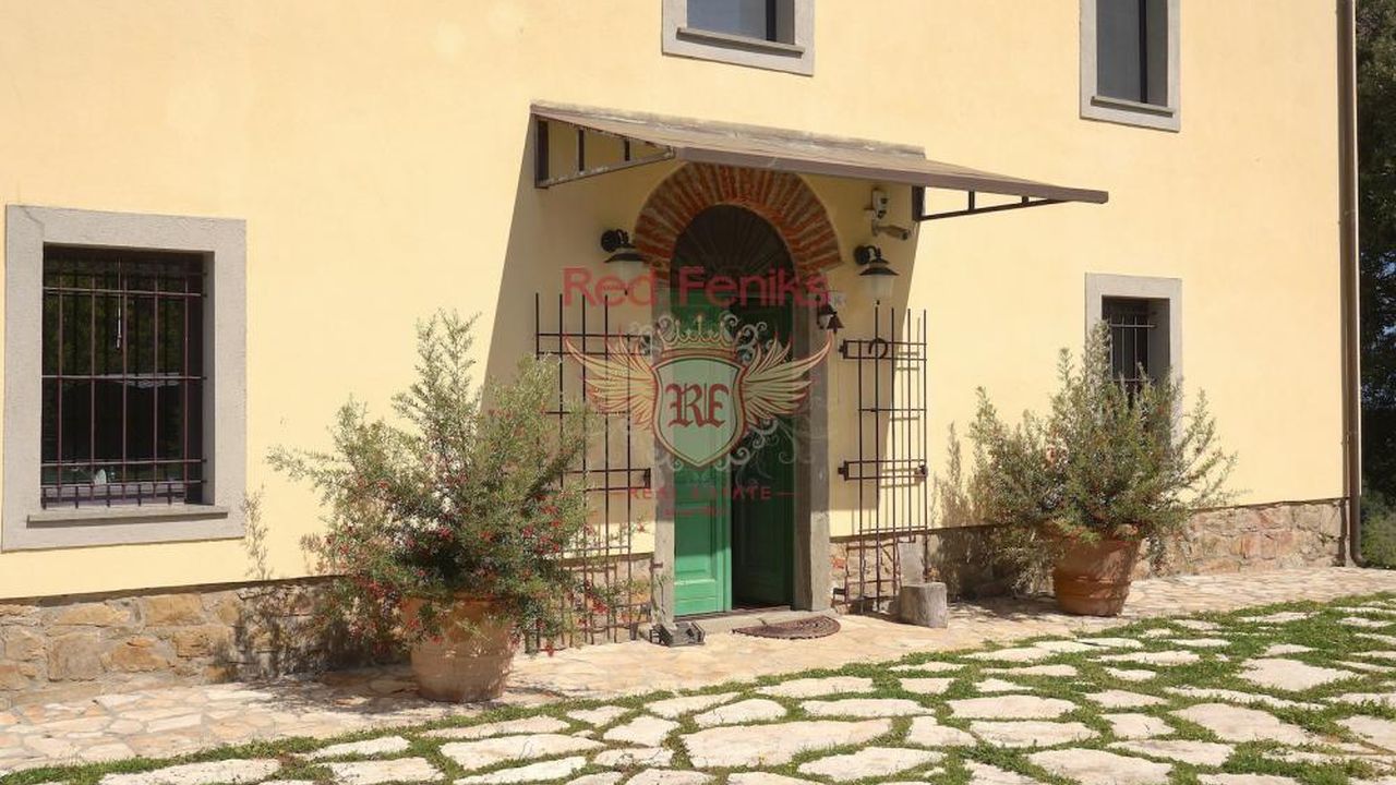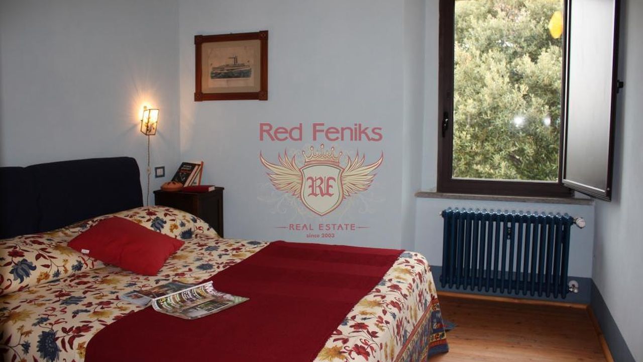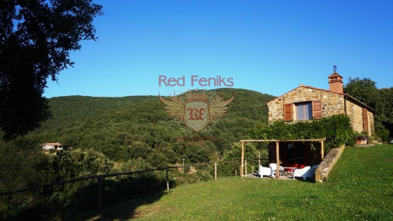 Отреставрированный в 2011 году трёх-уровневый дом и двух-уровневый домик для гостей расположены на вершине холма с потрясающими панорамными видами в 10 км от порта Марина ди Скарлино и 15 км. от пляжей Пунта Ала.