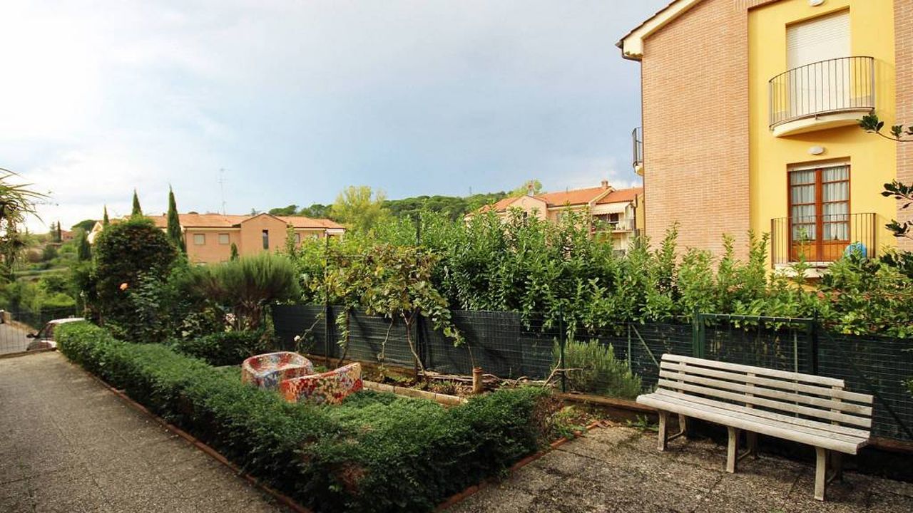 Собственность включает удобный гараж внутри площади кондоминиума и небольшой внутренний двор, не огороженный, перед входом в здание, чисто декоративный.