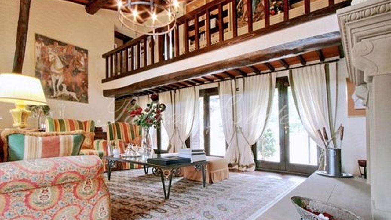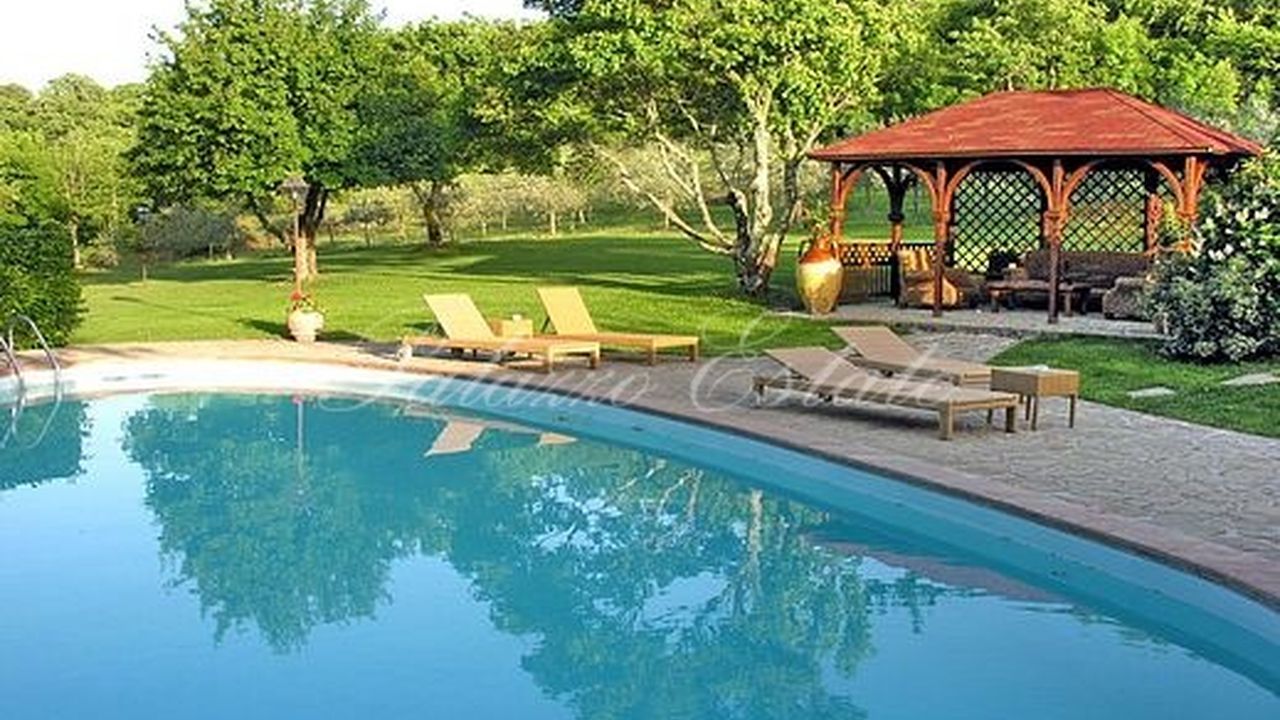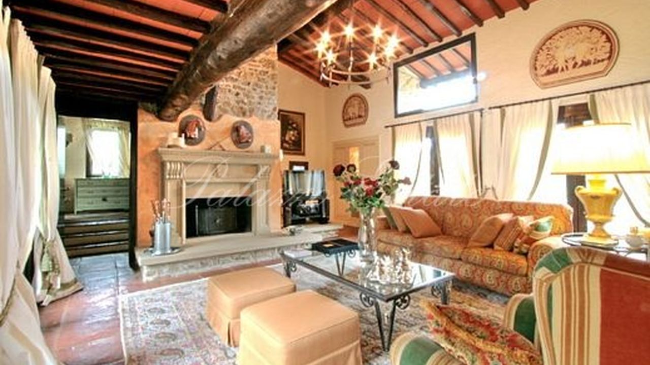Гармонически интегрированное в парке, поместье Casale San Giorgio имеет приятно сбалансированную структуру дома. Внешние каменные стены представляют характер Тосканы, дополняют который терракотовые полы ручной работы и деревянные навесные потолки в сочетании с керамической плиткой. Область дневного пребывания характеризирует красивый камин из светлого камня и большие окна, которые позволяют Вам наслаждаться расслабляющим видом на сад. Дом в настоящее время используется, поэтому находится в отличном состоянии.