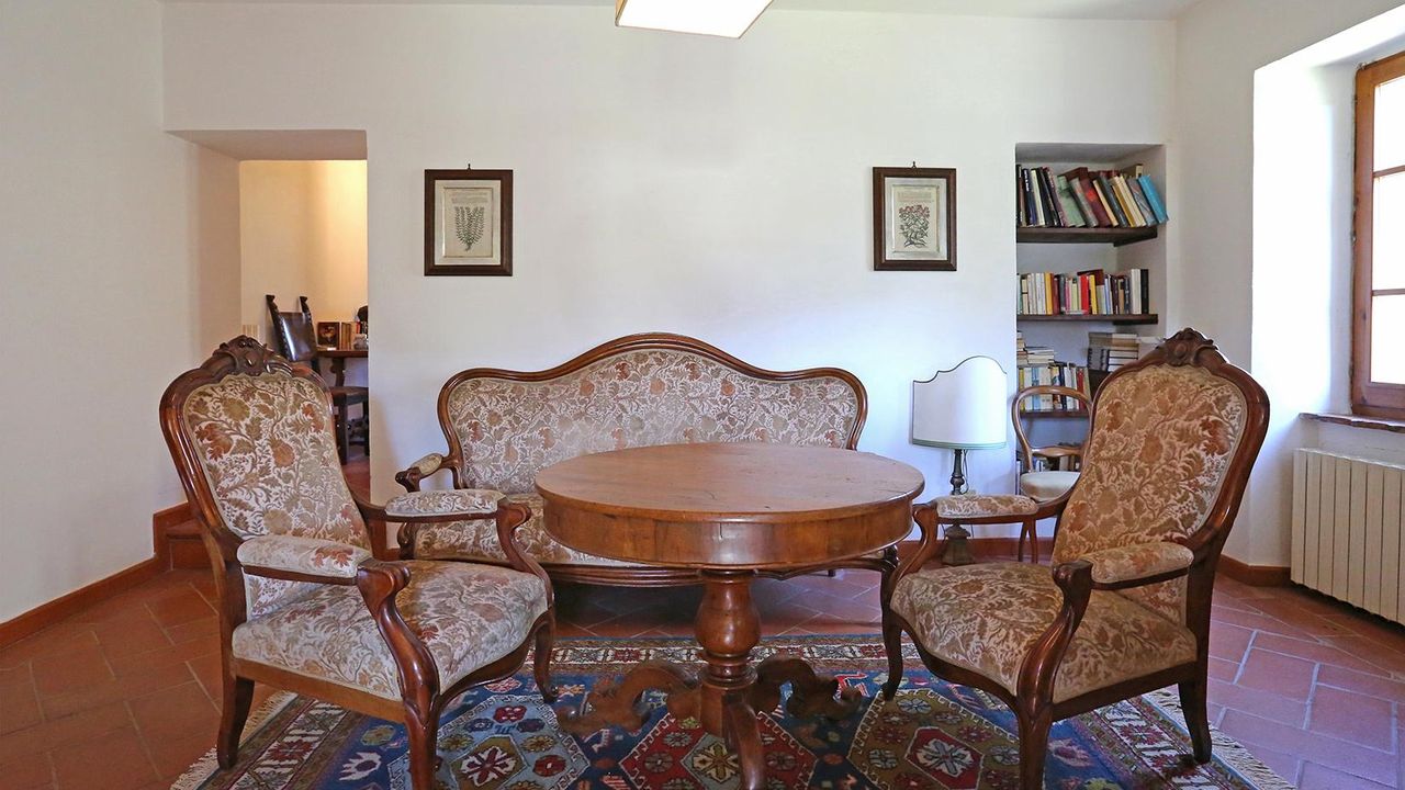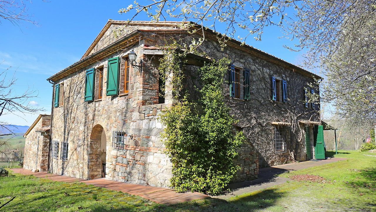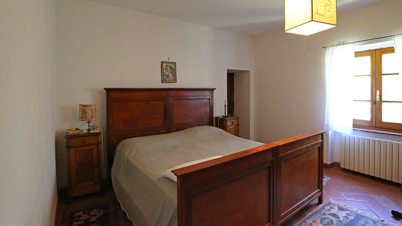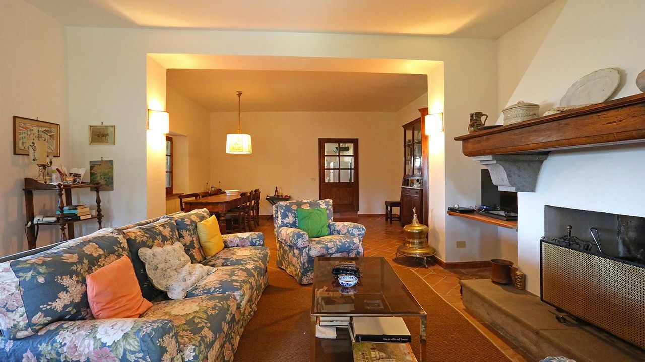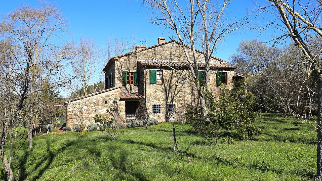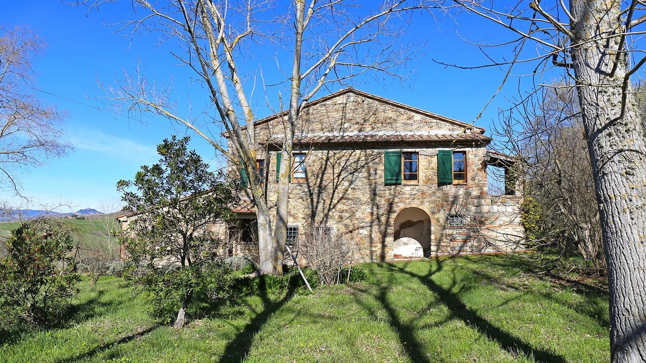 Вилла на продажу в Тоскане, Усадьба “I Bagni” – В коммуне Сан Кашано дей Баньи (Si), расположена в самой панорамной области, в то же время находясь в центре населённого пункта, данная вилла имеет площадь около 400 кв.м. на трёх этажах, плюс дополнительное строение в 30 кв.м., поленница в 5 кв.м. и парк – прилегающий участок земли в 2,6 га., частично под оливковой рощей. Кроме того в пределах данной собственности протекает ручей с тёплой термальной водой, «избытка» из близлежащего термального спа-центра “Fonteverde Tuscan Resort”, с определённой возможностью её сбора и использования.