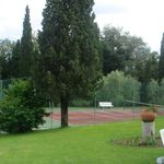 Бассейн и теннисный корт.