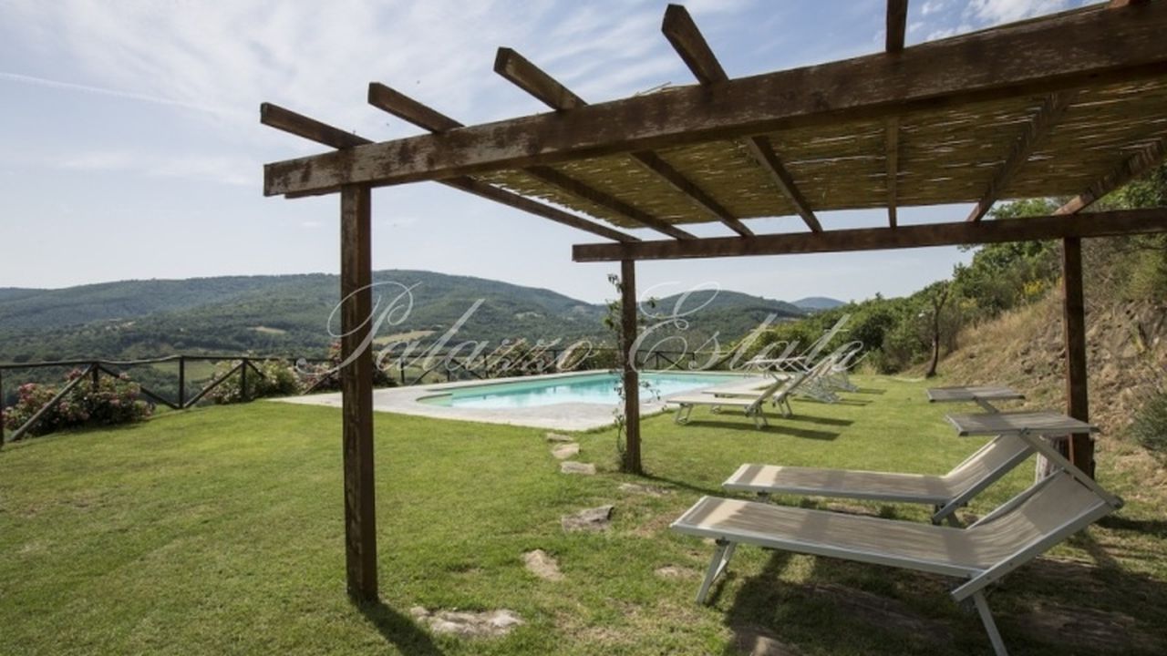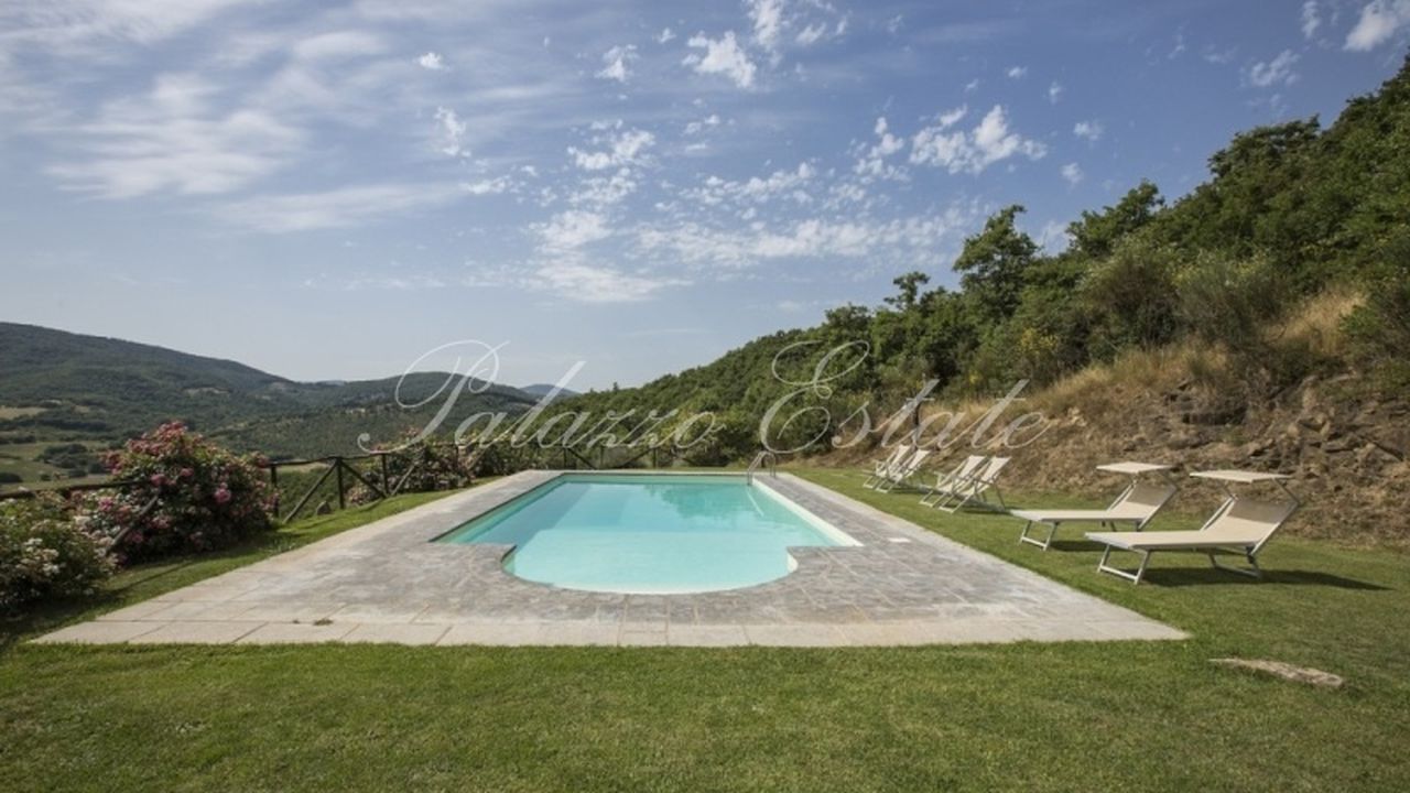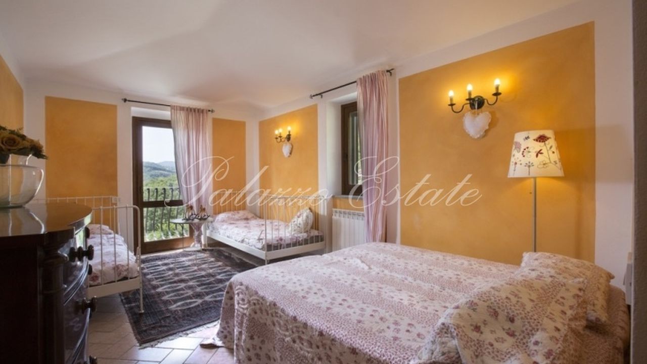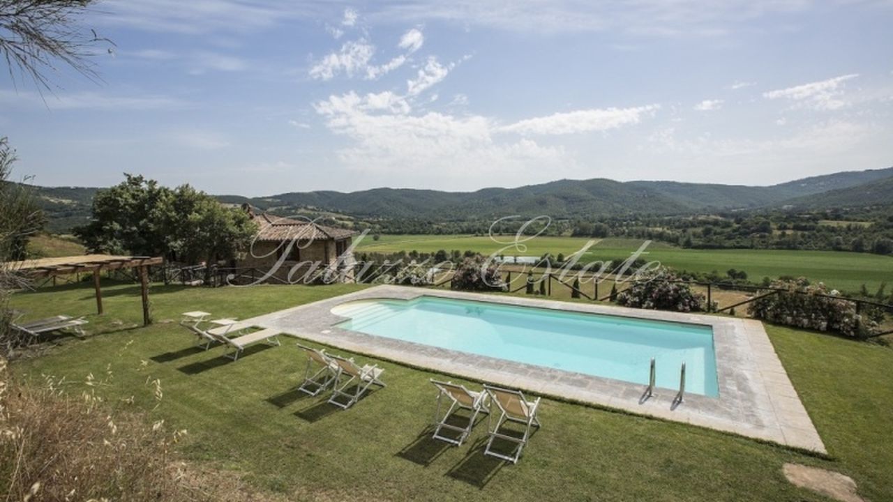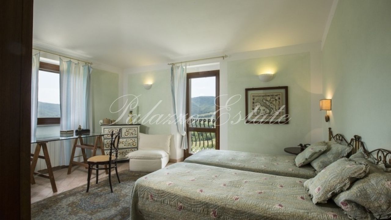Недвижимость расположена на вершине холма, с которого открывается невероятный панорамный вид на окружающую сельскую местность. Дом полностью отремонтирован, располагает площадью 338 кв.м на 2 уровнях (плюс погреб). Всего 4 спальни и 3 санузла. Площадь частной территории достигает 6,8 Га с бассейном.