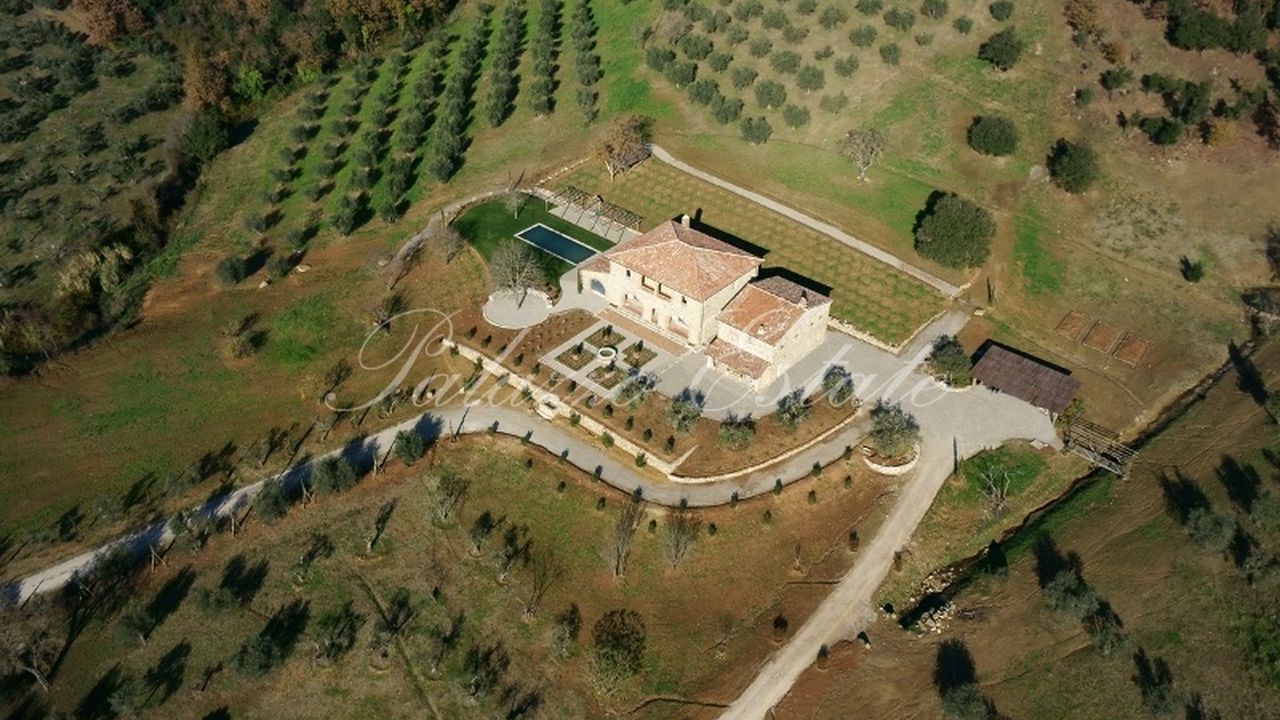 Объект, результат умной перестройки старой фермы, имеет общую площадь 589 квадратных метров, плюс веранда 33 кв.м., беседка 22 кв.м., терраса 19 кв.м., сарай под реконструкцию около 100 квадратных метров. Земля площадью 5 га прилегает к дому, и здесь имеется облагороженный сад с бассейном и великолепным видом на долину Умбрии.