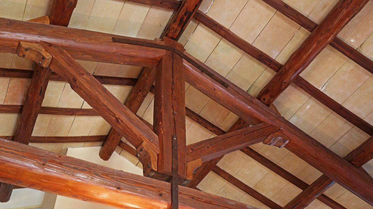 Первый этаж - большая гостиная, столовая, кухня с кладовой, прачечная, санузел. Второй этаж (вход изнутри и снаружи) - две спальни с ванными, кабинет, портико со старинной печью.