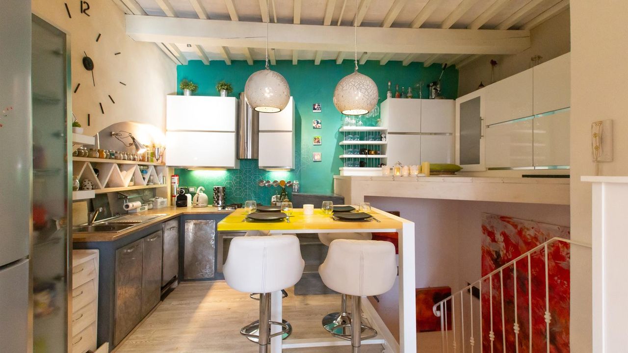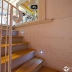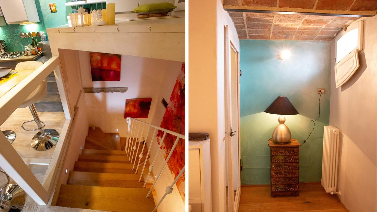 Внутреннее расположение: вход, гостиная зона с открытой кухней и просторным залом, старинная лестница эпохи постройки дома ведет на верхний этаж, где расположена большая спальня, ванная, кабинет (который может быть использован как дополнительная спальня).