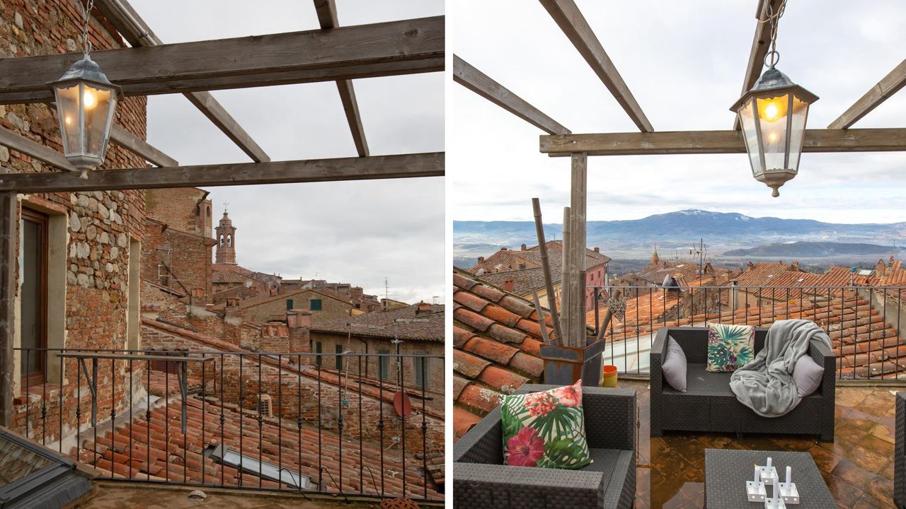 Внутрення лестница ведет на четвертый этаж с панорамной террасой с видом на старый город и тосканские холмы.