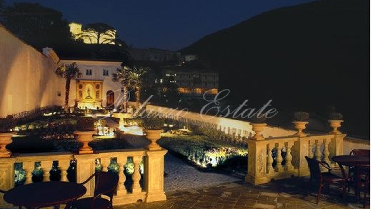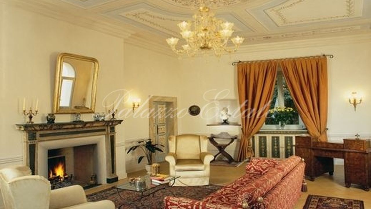 Из сада, пересекая красивую террасу, мы попадаем в область дневного пребывания: просторную гостиную 40 м. кв. с камином и комфортную столовую. Остальная часть дома состоит из 11 спален, все со своей ванной комнатой, и некоторых помещений, предназначенных для приготовления пищи, хранения вещей и центральной котельной. Лифт соединяет все этажи.