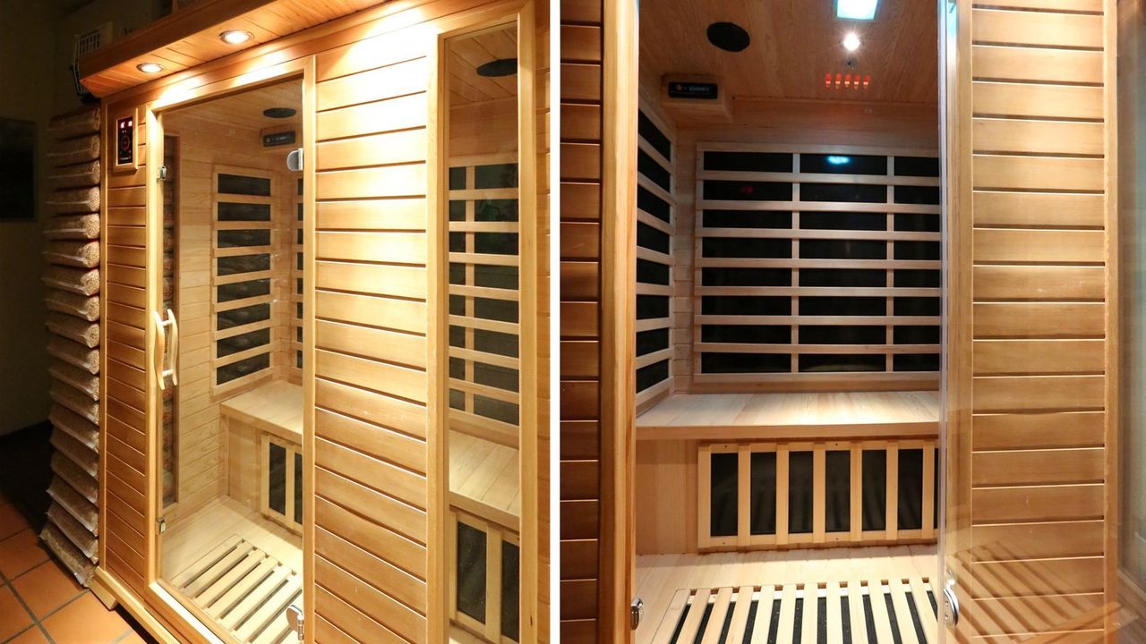 Первый этаж - зал с камином и витражами с панорамным видом, кухня, спальня с санузлом, сауна и прачечная.