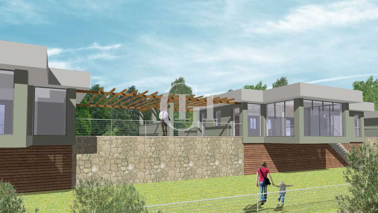 По обеим сторонам дома расположены террасы площадью около 45 кв. м. каждая.
