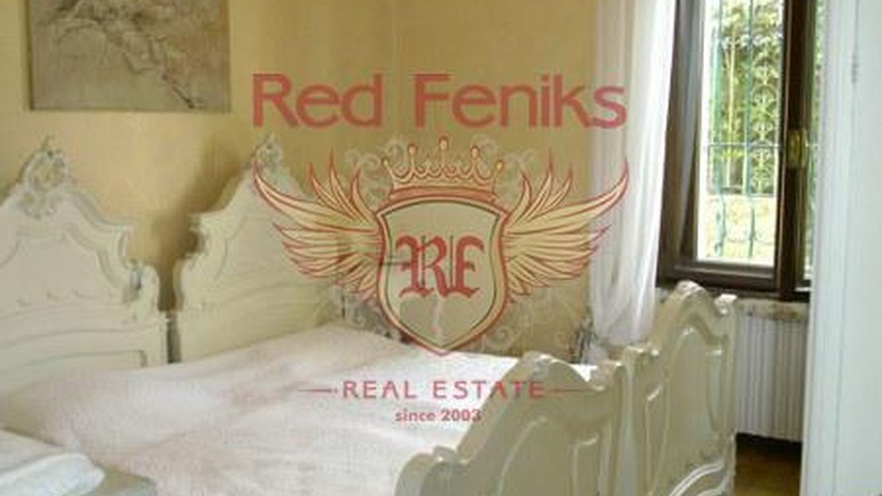 Имеется частный причал для лодки, нараж на 2 машины. Вилла меблирована антикварной мебелью, установлена сигнализация.