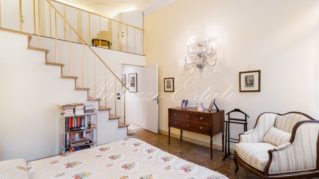 Квартира площадью около 406 кв. м. располагается на основном третьем этаже, а большое складское помещение - на первом этаже старинного дворца. Здание оснащено лифтом.