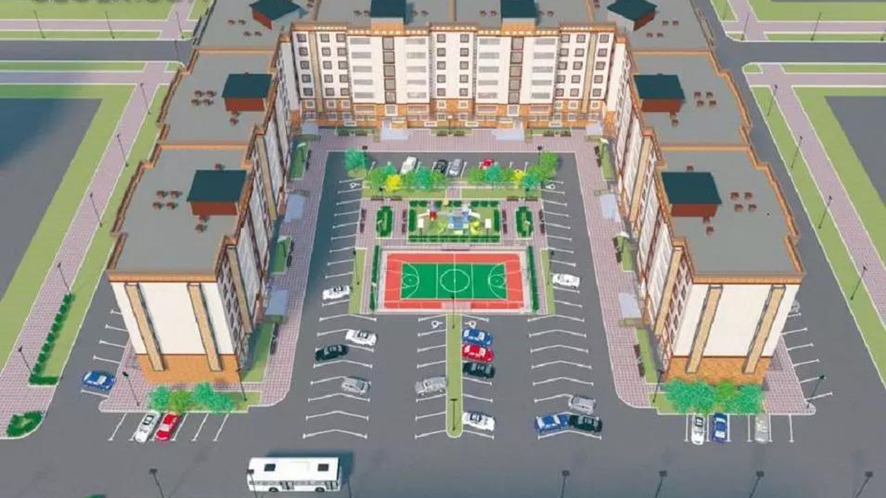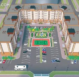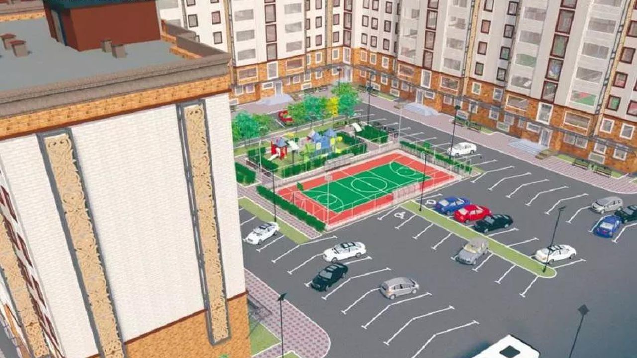 Принципы благоустройства Секции дома расположены в форме буквы «П» и образуют закрытый с трех сторон двор. Придомовая территория разделена на функциональные зоны. В центре внутреннего двора будет расположена спортивная площадка, огороженная металлической сеткой. Рядом обустраивается игровая площадка и зона отдыха. С другой стороны от спортплощадки и по внутреннему периметру здания располагаются наземные парковочные места.