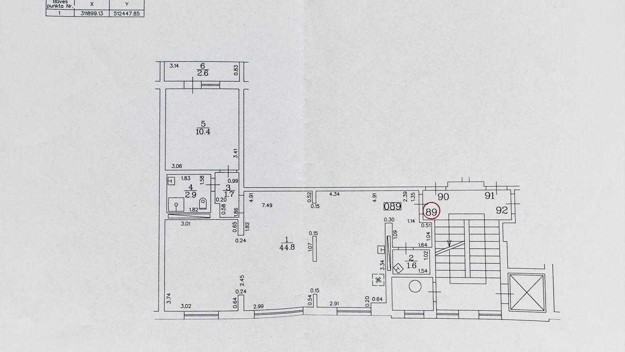 The apartment was originally a 3-room layout. A major redesign has been carried out; all alterations have been officially approved and registered in the Land Register. One large space of 45 m2 has been created by combining the entrance hall, kitchen, and two rooms.