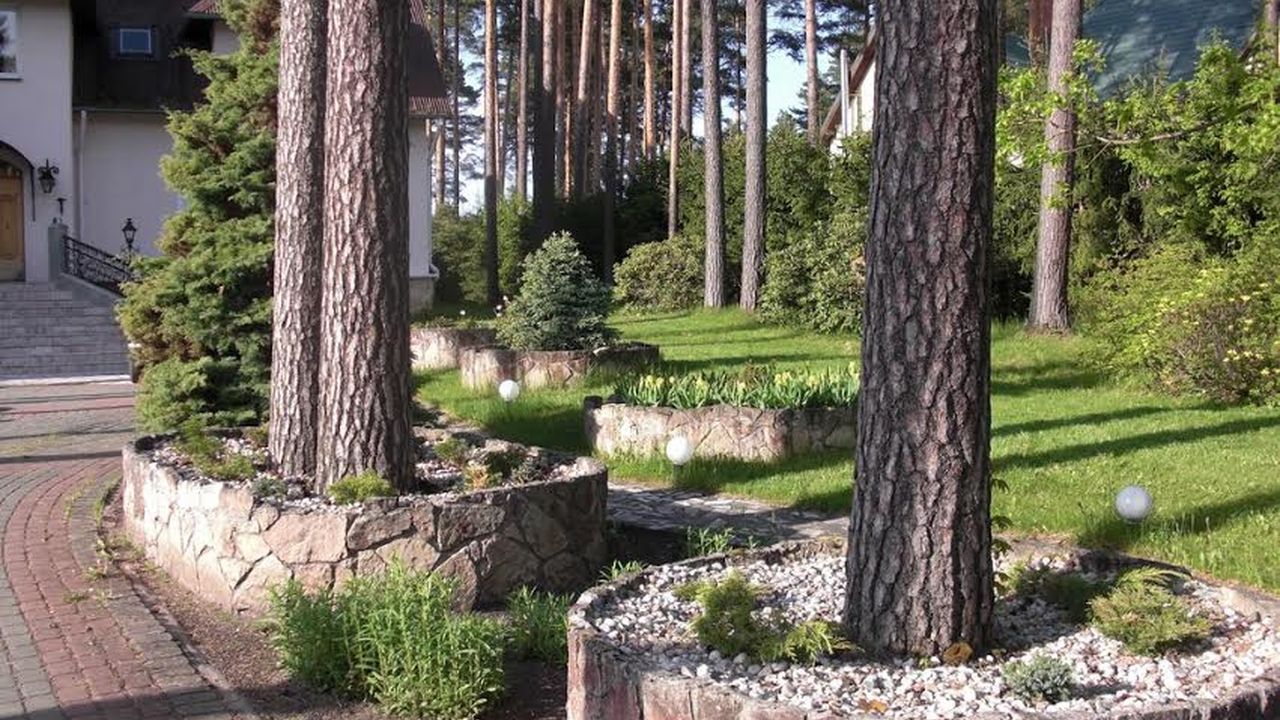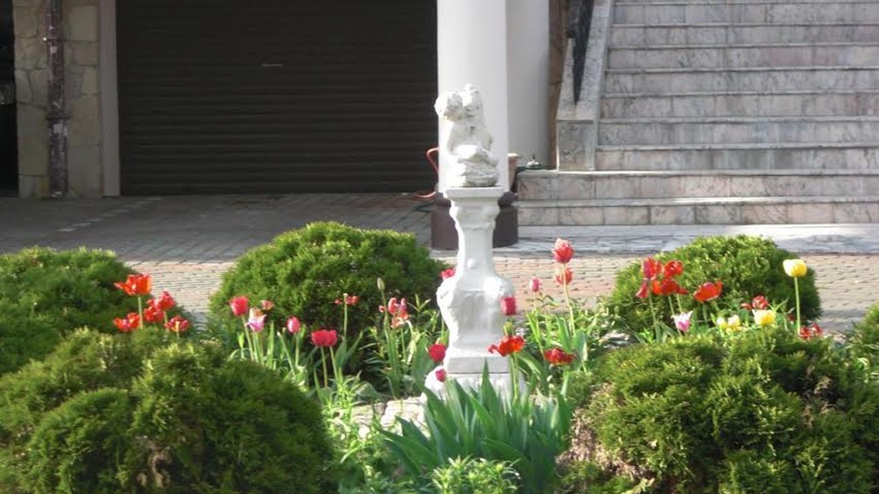 роликах и т. д. Отдельные части территории выложены мраморной