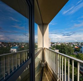 На всех балконах положено покрытие отражающие ультрафиолетовые лучи.