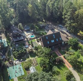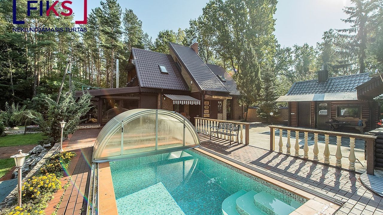 УСАДЬБА. Усадьба расположена в живописном, уютном и тихом месте, в окружении лесного массива, на земельном участке 55 аров. Имеется три дома - два больших дома и один поменьше. Территория усадьбы огорожена. Два отдельных въезда. Территория усадьбы прекрасно благоустроена: имеются дорожки, уложенные клинкерной брусчаткой, декоративные растения, фруктовые деревья, оборудованы три беседки, альпинарий с декоративным бассейном. Имеется баскетбольная площадка, детская площадка, бассейн, купель с подогреваемой водой, баня. В усадьбе оборудована сигнализация.