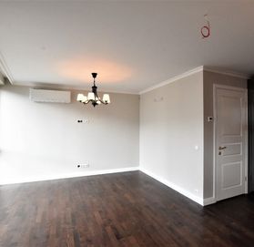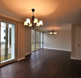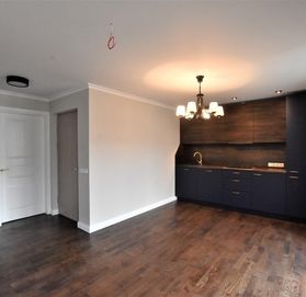 Квартира оборудована высококачественными материалами: деревянный пол (паркетные доски), деревянные плинтусы, деревянные двери, пластиковые, двухкамерные окна. Потолочный плинтус в классическом стиле. Кухонная мойка из каменной массы , в зоне приготовления пищи применяеться освещение светодиодов (LED). Техника AEG, электрическая плита, холодильник, морозильник, посудомоечная машина и довольно просторные кухонные шкафы.