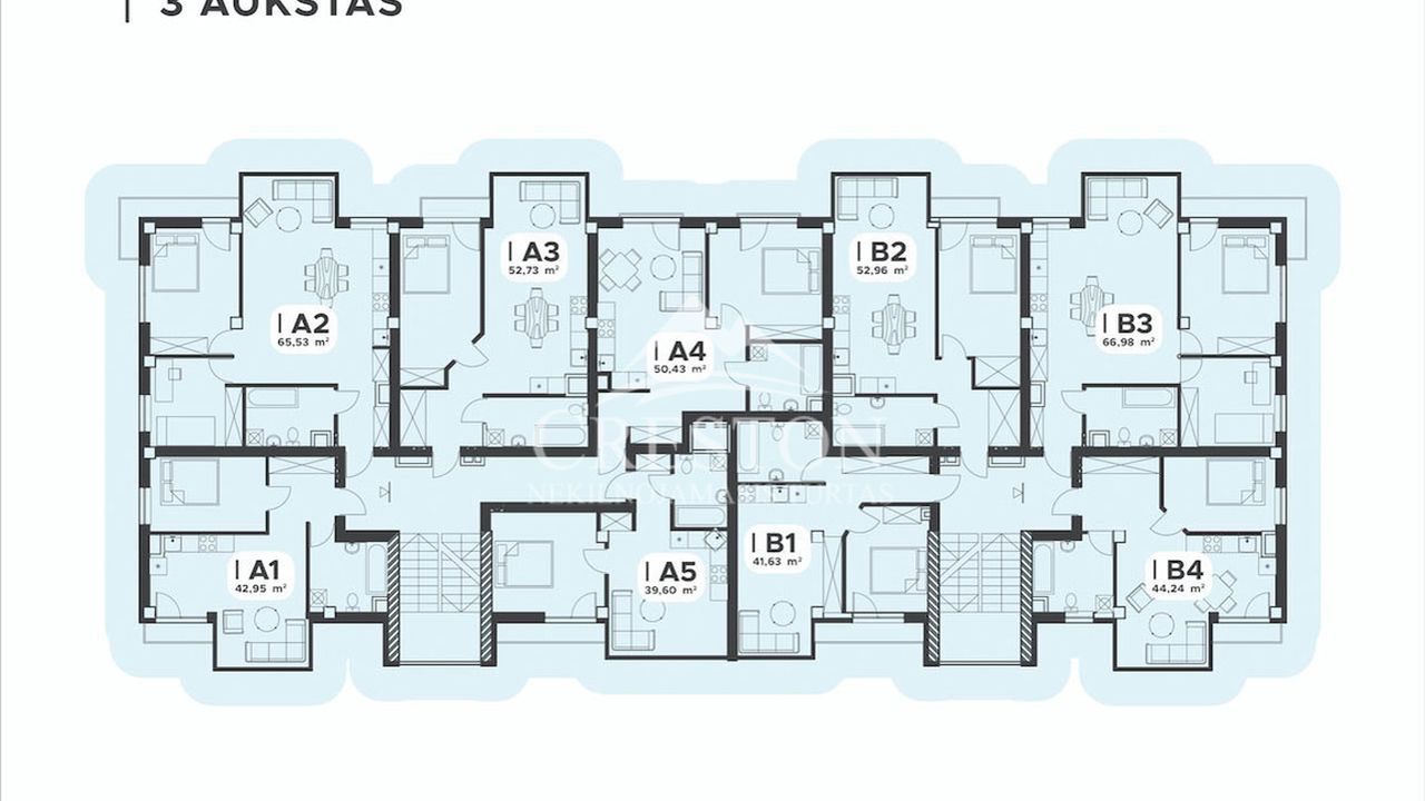 Statomas 4 aukštų namas yra nedidelis: jame bus tik 35 erdvūs, patogūs gyventi šeimai butai, kurių vidutinis plotas yra apie 60 kv.m. Viršutiniame aukšte butai yra su antresolėmis, t.y. – per du aukštus.