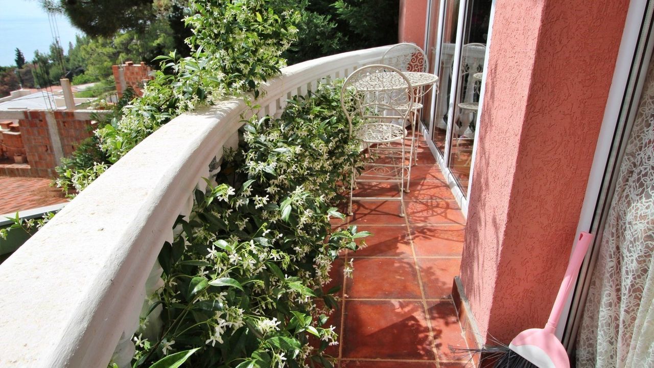 Второй и третий этажи соединены широкой внутренней лестницей. Внизу кухня/столовая, просторная гостиная, ванная, кладовка, из гостиной выход на террасу. Вверху – холл и выход на просторную террасу, где есть и миникухня и отличное место для отдыха; ванная; две спальни.