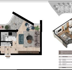 Код объекта 5.25.730.10687 Студия в баре на первом этаже (посадка) многоквартирного дома с террасой.
