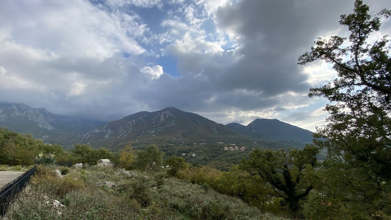 Выше расположены 5 домов, общая территория и незаконченный бассейн.