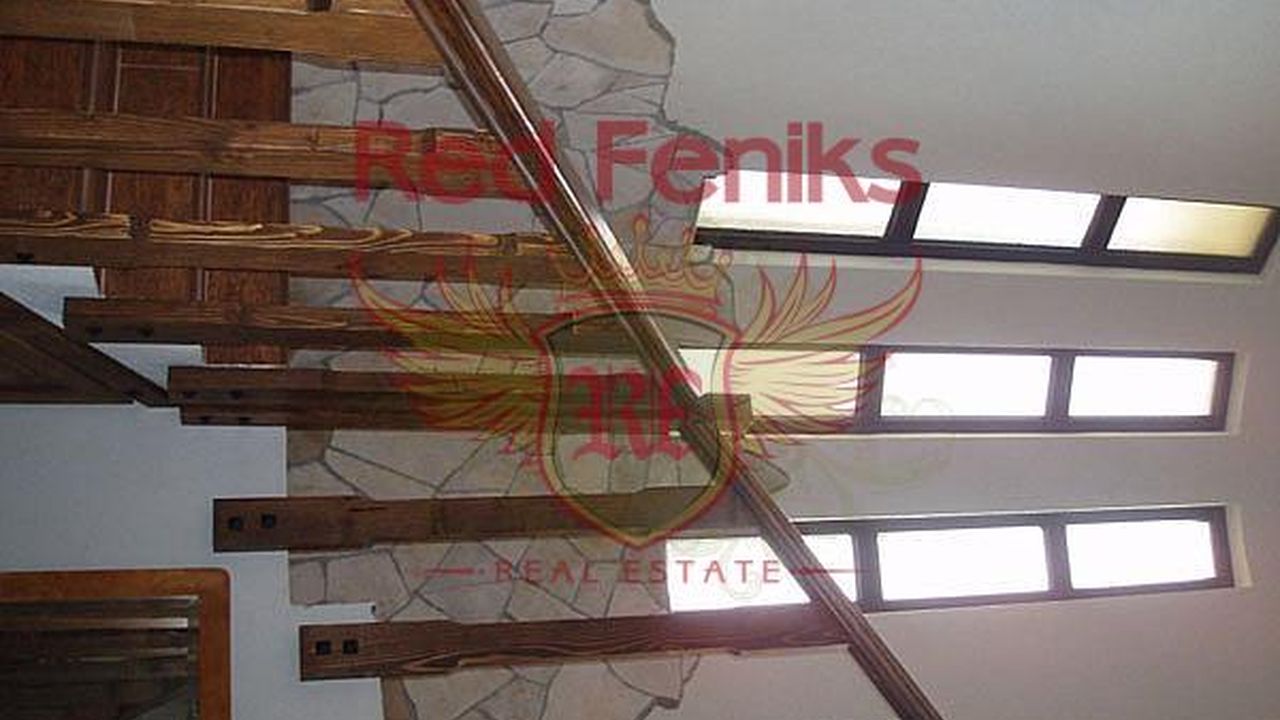 мебелью из натурального дерева. На втором этаже в гостиной камин. Широко