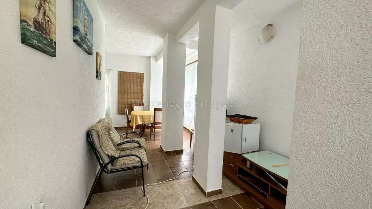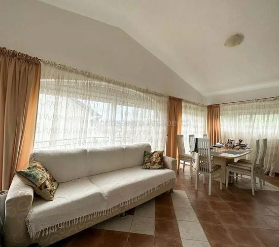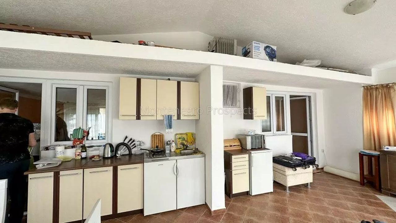 просторная терраса с видом на горы, спальня, на застеклённой просторной террасе кухня/столовая, ванная. Небольшой вид на море.