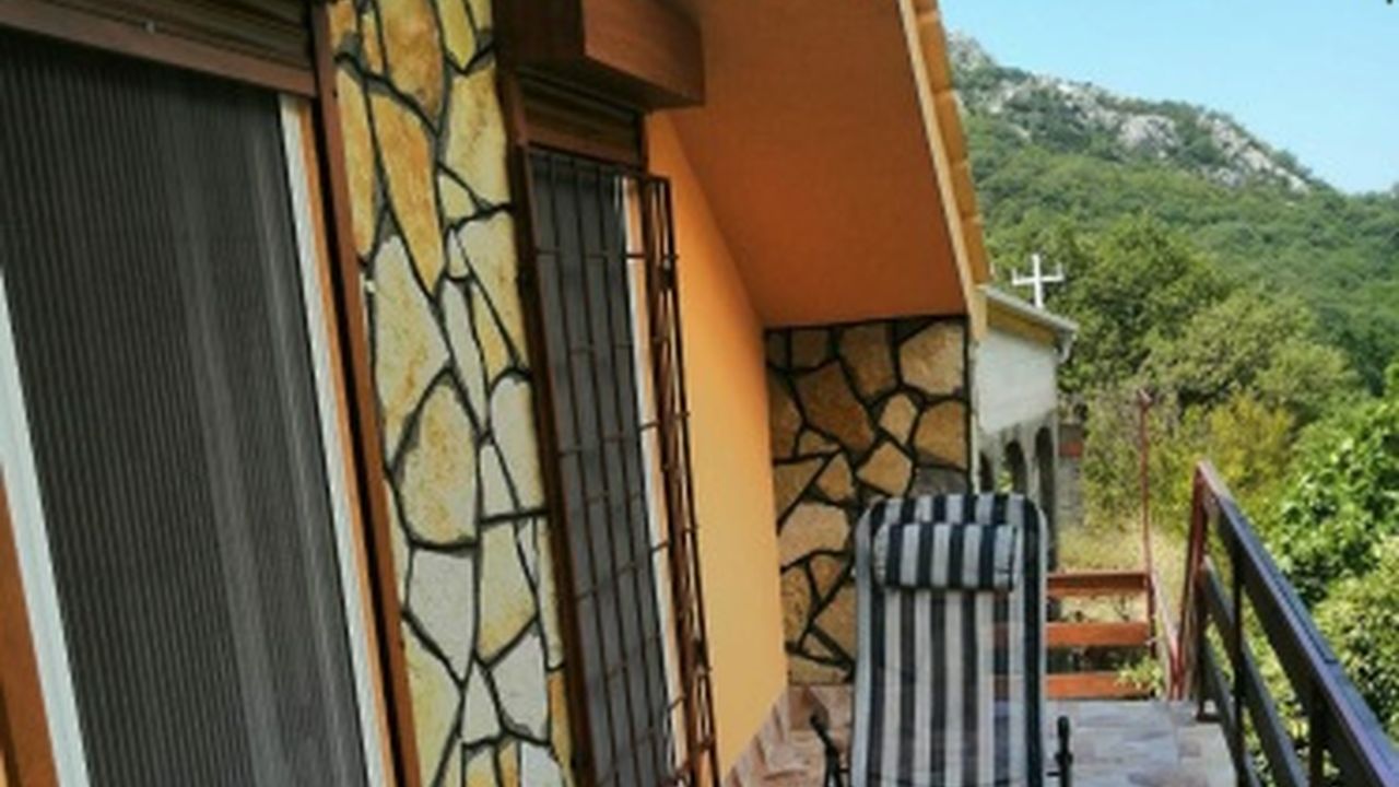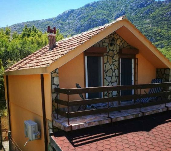 On the ground floor, there is first a spacious veranda from which you enter the living room with a dining room, then a small kitchenette and a bathroom.