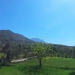 С участка открывается вид на горы, вокруг много зелени и чистый воздух.