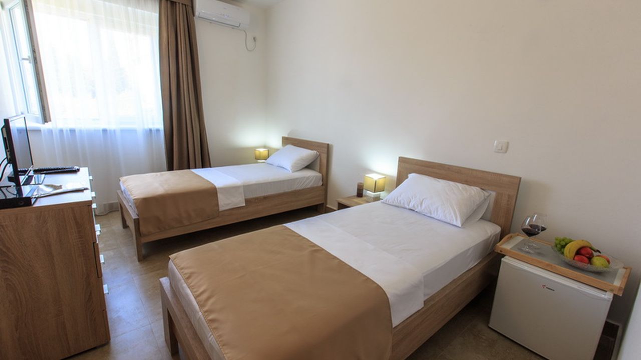 На втором и третьем этаже 12 номеров. Десять из них номера судии и два имеют по две спальни.