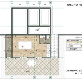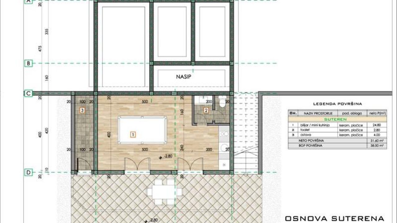 1 - гостевой апартамент (спальная комната, объеденная с мини - кухней, ванная комната), гардеробная, финская сауна. Терраса перед этажом 20м2. Запасной резервуар воды с насосом (автоматическая подача) 40 куб м. Подсобное помещение 8м2;