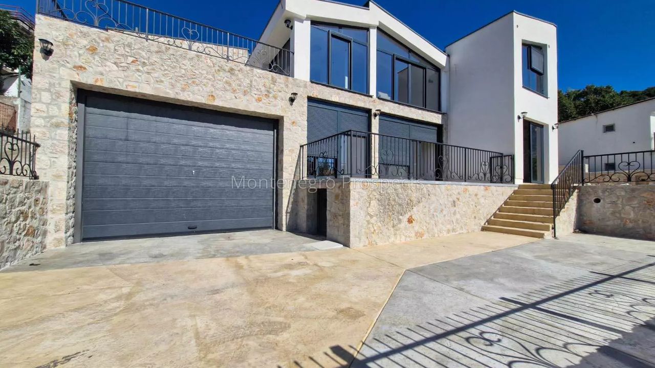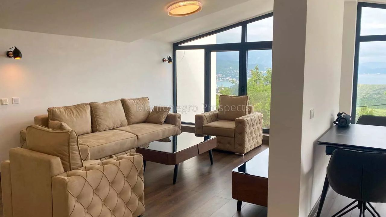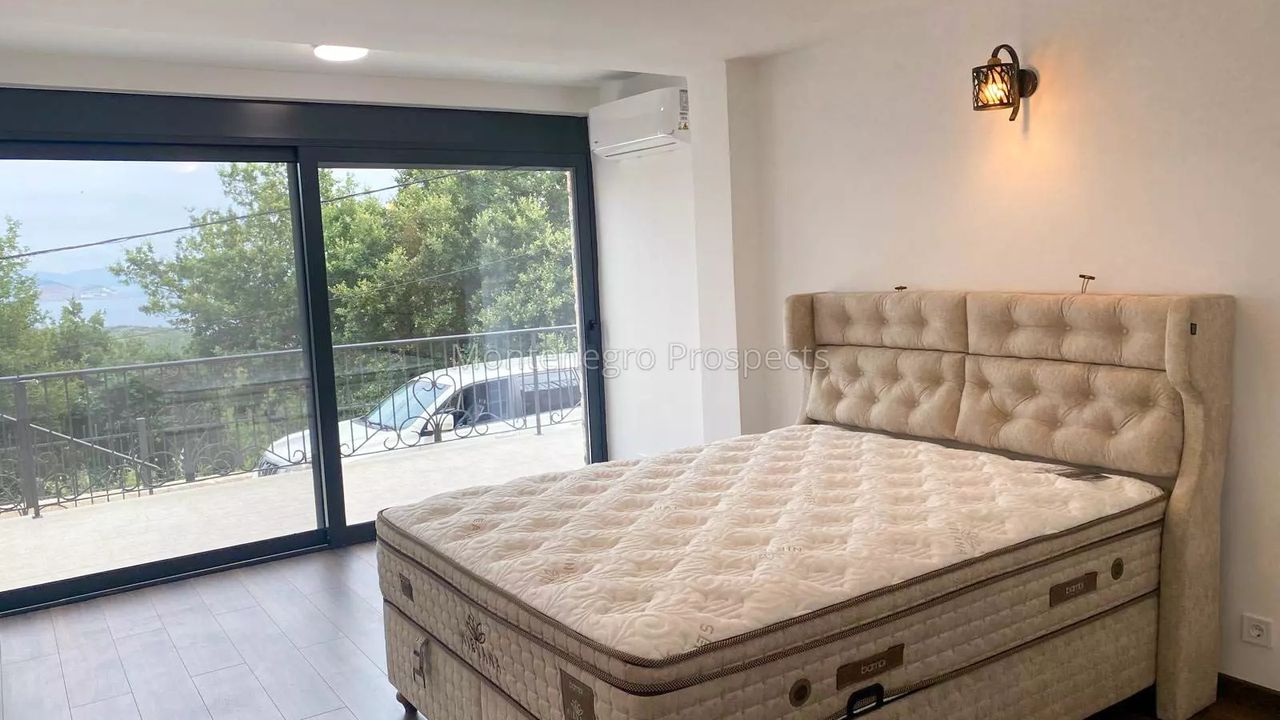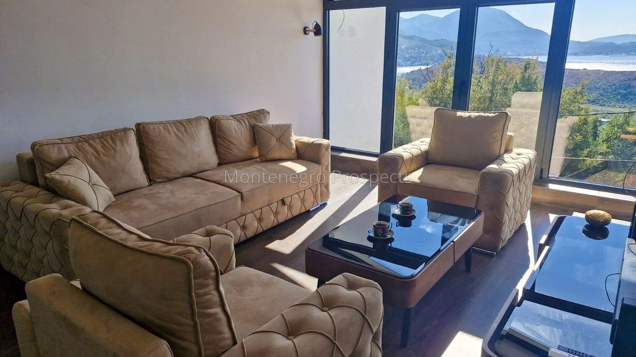 Внутренняя лестница ведёт на верхний этаж, где находится открытое пространство – гостиная, столовая и кухня с выходом на большую террасу с видом на море и Сутоморе. Здесь же есть гостевая спальня, современная ванная комната с ванной и дополнительная ванная с душевой кабиной.