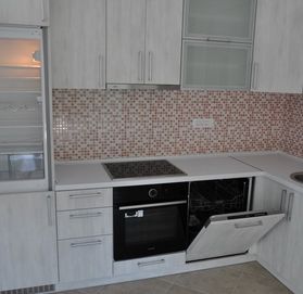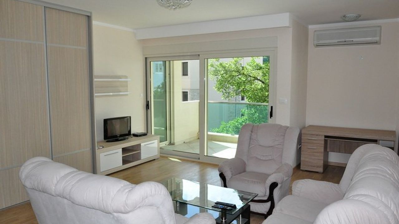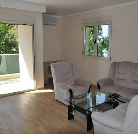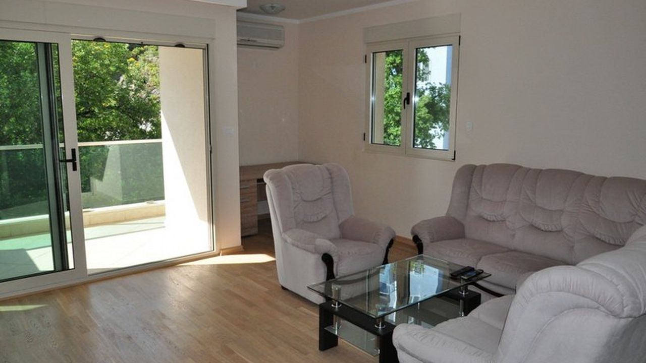 Гостиная оборудована кондиционером, комодом под ТВ, телевизором, мягкой мебелью, журнальным столиком, обеденной группой; в ванной комнате имеется электрический водонагреватель, вся необходимая сантехника, душевая кабина с гидромассажем, шкафчик и зеркало, стиральная машина; в кухонной зоне располагается встроенная кухня с посудой и бытовой техникой (плита, холодильник, духовка, вытяжка, чайник); в спальне – двуспальная кровать, прикроватные тумбочки и шкаф-купе, кондиционер; прихожая оснащена шкафом и крючками для верхней одежды. В квартире на полах паркетная доска, в кухонной зоне и ванной комнате – керамическая плитка, на окнах установлены автоматические жалюзи москитные сетки. Из панорамных окон открывается вид на Бечичи и Адриатическое море. Подключены спутниковое телевидение и WI-FI.