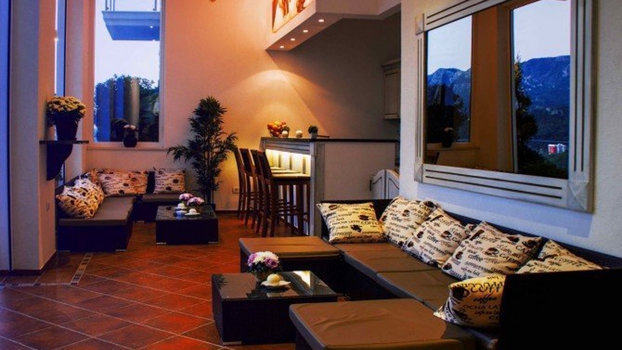 Пентхаус с завораживающим видом на море и горы. Три спальни, просторные террасы, атриум с бассейном и баром.