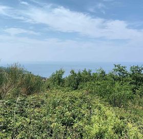 Описание участка: участок под застройку, практически правильной квадратной формы, площадью 5343 м2, находится в двух км от магистрали. Земля наклонной формы, с высокой растительностью. С участка открывается потрясающий вид на море.