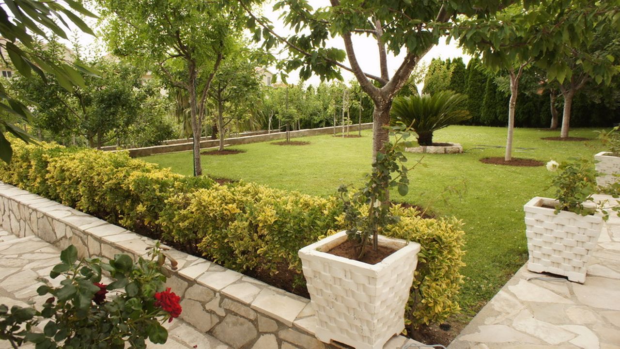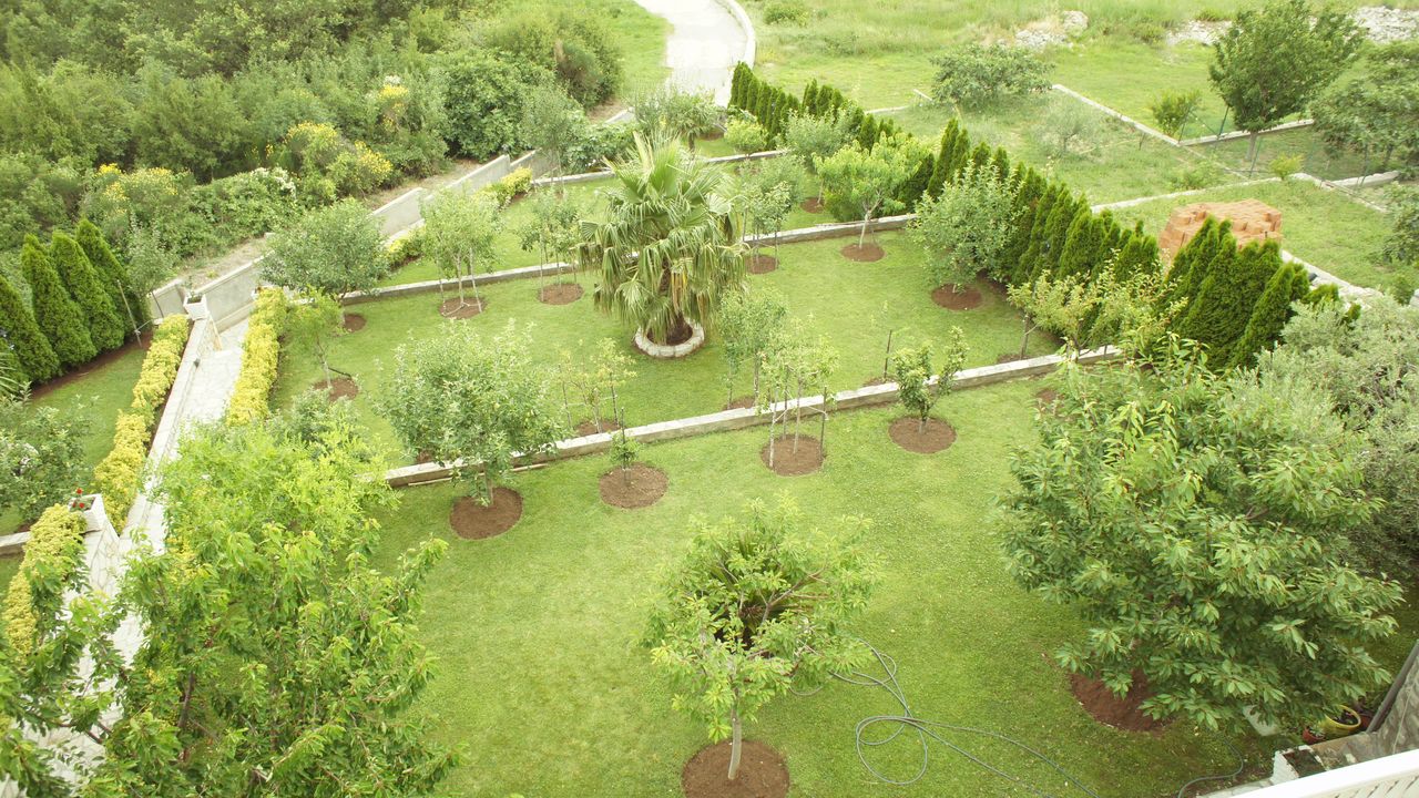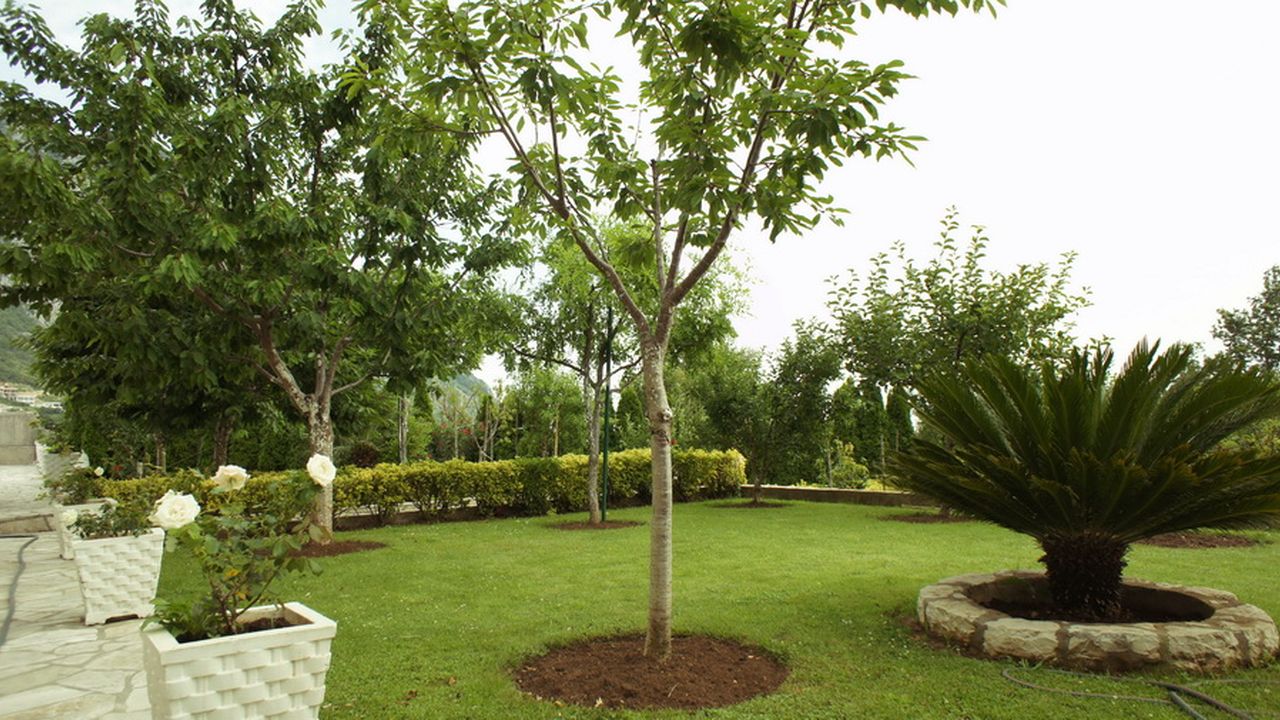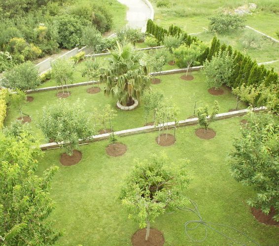 В саду фруктовые деревья: груши, яблоки, цитрусовые и т.п.